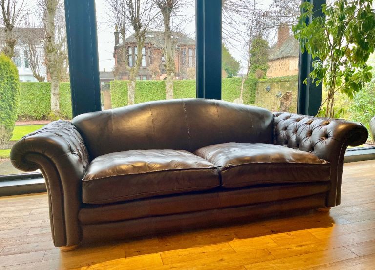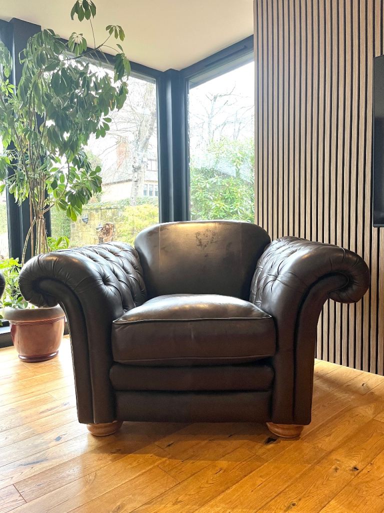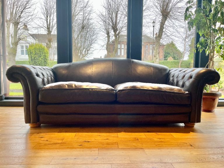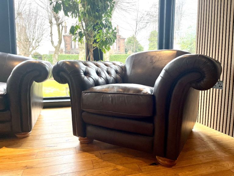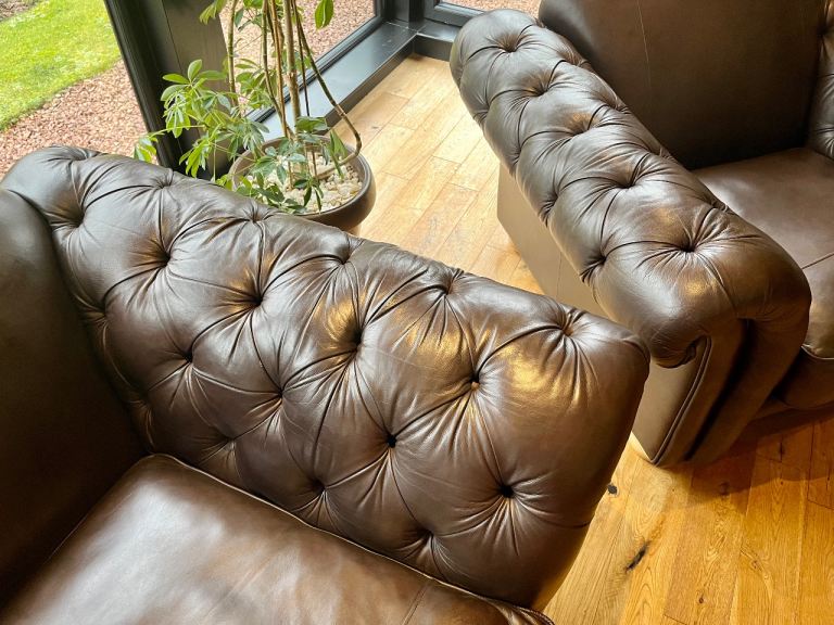 Stunning luxury leather Chesterfield sofa and armchair set for sale. This set is high quality, extremely comfortable in amazing condition. The colour is brown. Would look fantastic in any interior. Large 4 seater sofa and single armchair (originally £5000 new) Collection only £900 for both.