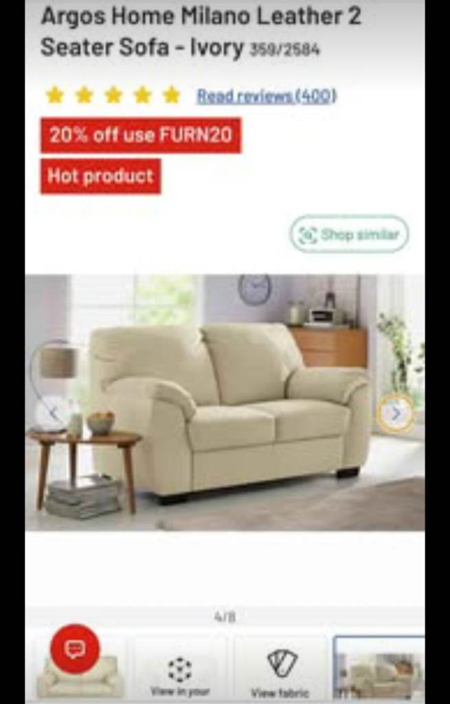 Milano Upholstery 2 Seater Sofa. Currently in Argos for over £400. It has a small area of stitch undone as in the photo. A very comfy sofa that has been used covered by a throw. Really great. Open to offers.