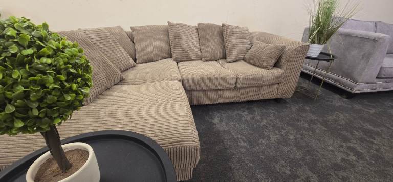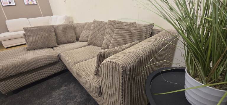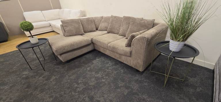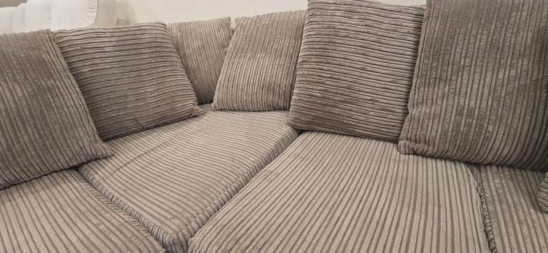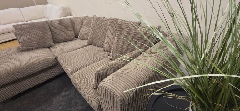 MOCHA JUMBO CORD CORNER SOFA DELIVERY AVAILABLE
