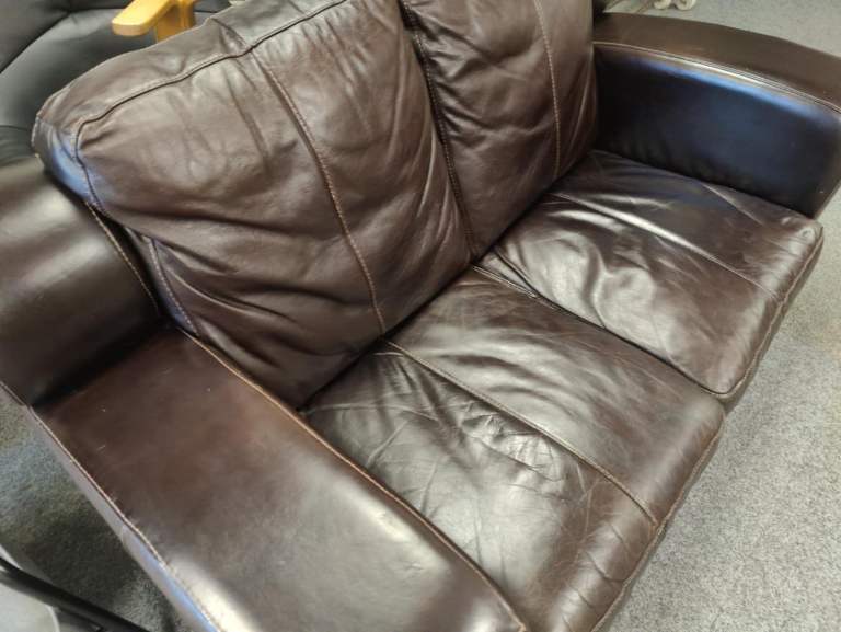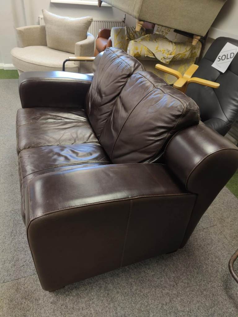 Modern Brown 2 seat leather sofa couch settee