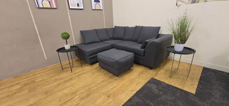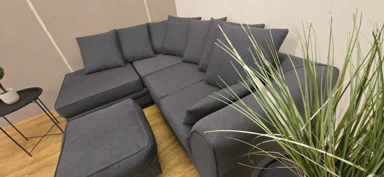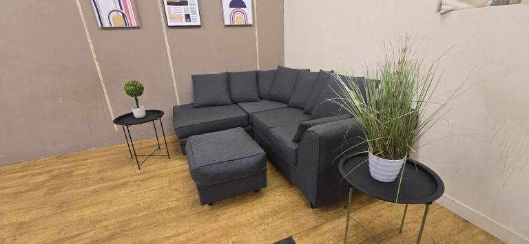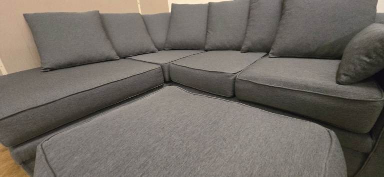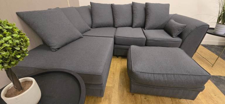MODERN GREY CORNER SOFA & FOOTSTOOL DELIVERY AVAILABLE