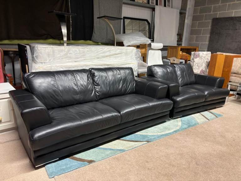 Modern Style Black Leather 2 and 3 Seater Sofas