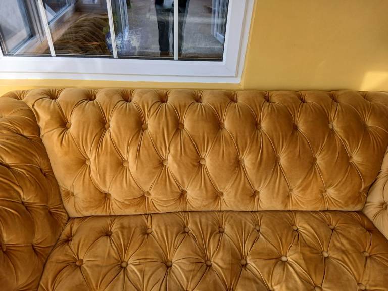 Large two seater velvet mustard sofa. Measurements are