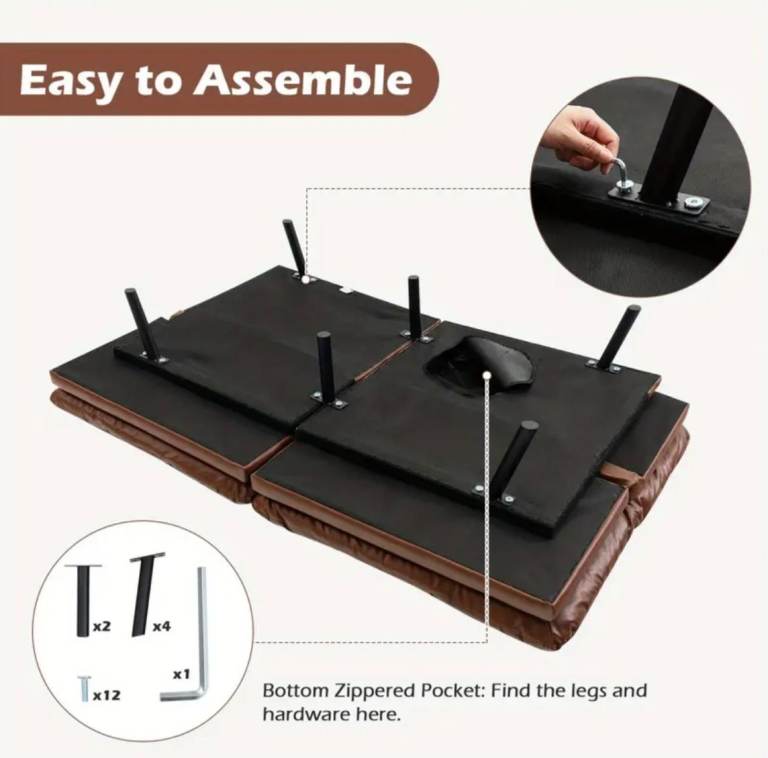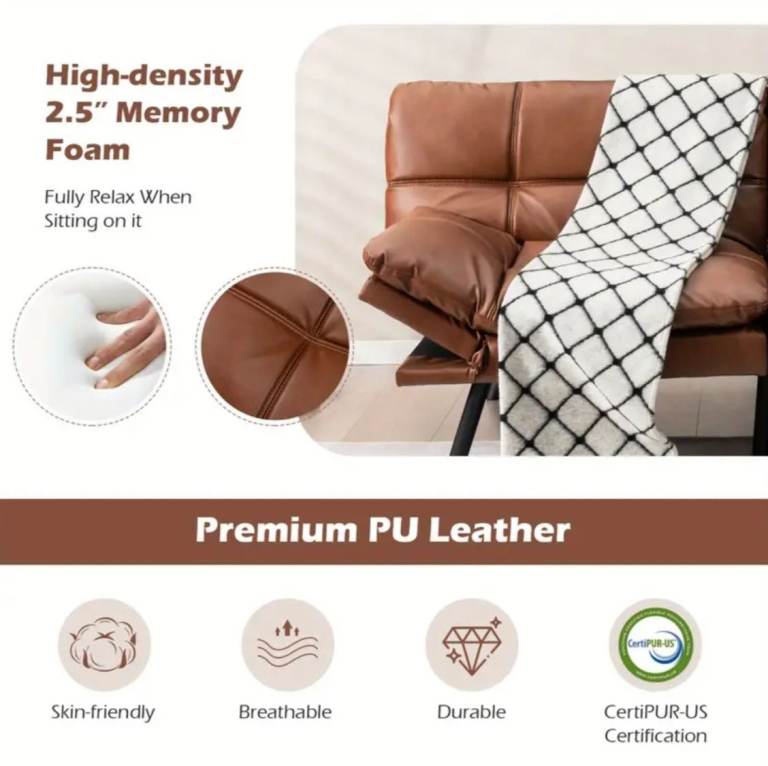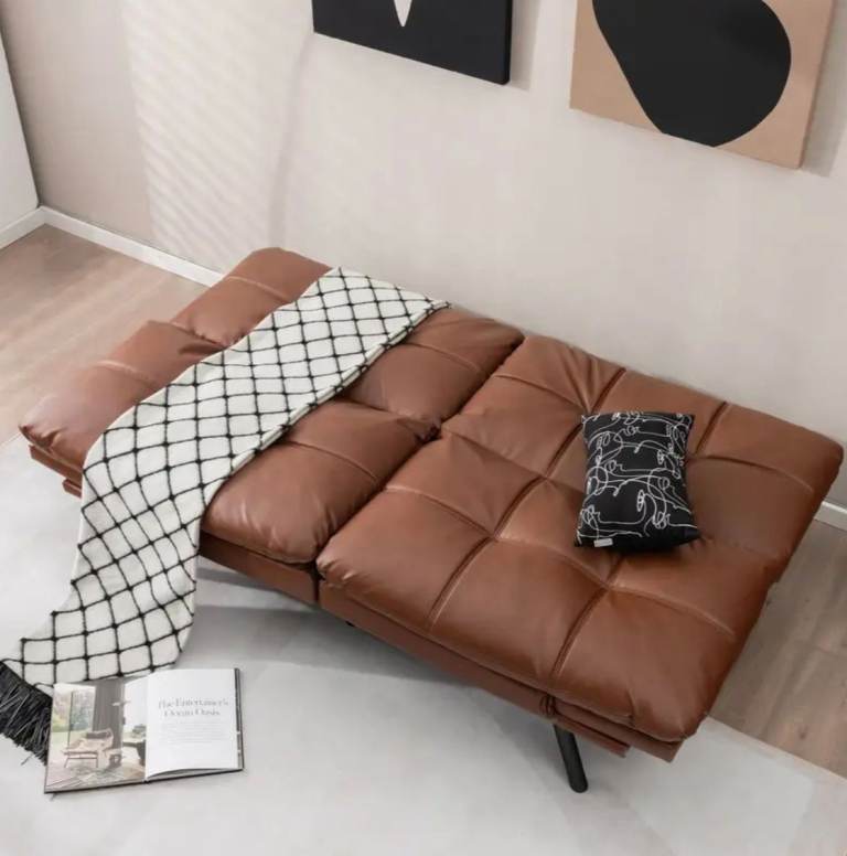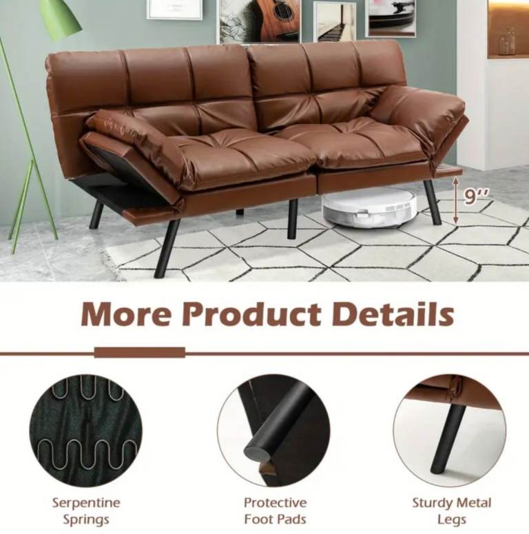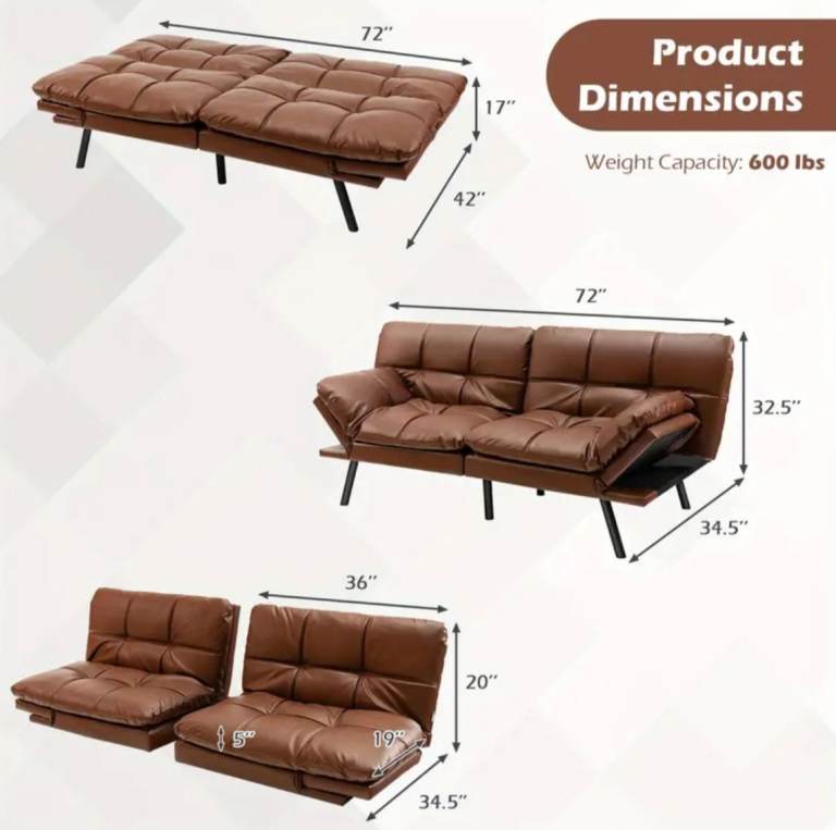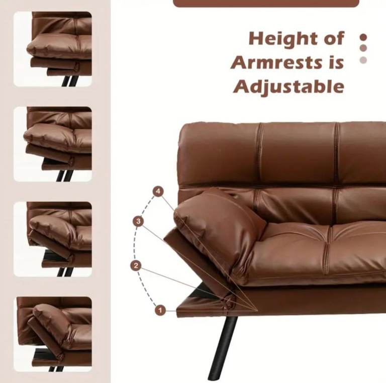 Posting for 7+ monthsNew 2-Seater Convertible Leather Loveseat Sofa Bed – Adjustable Memory Foam Sleeper Couch, Brown