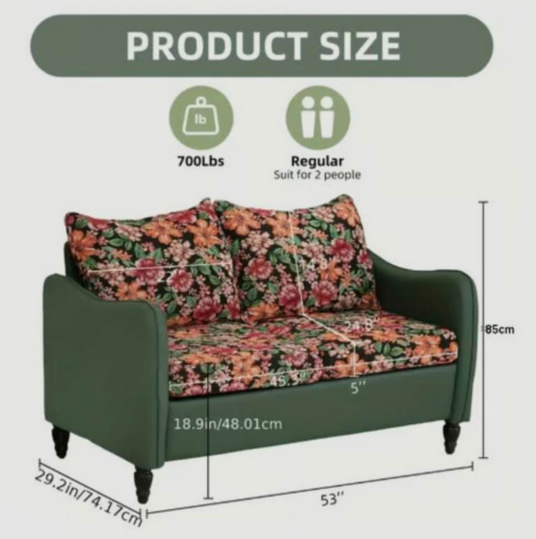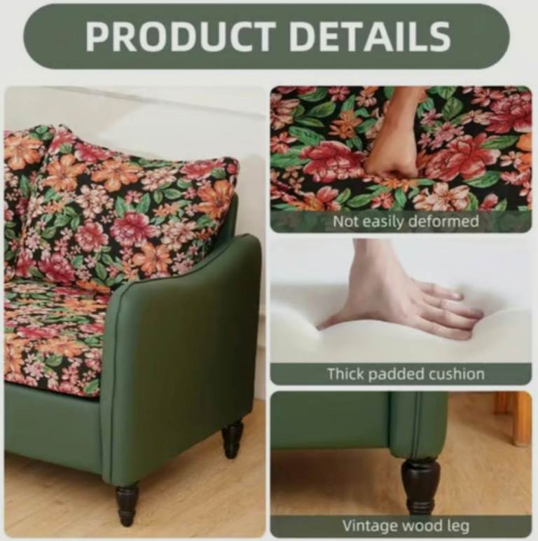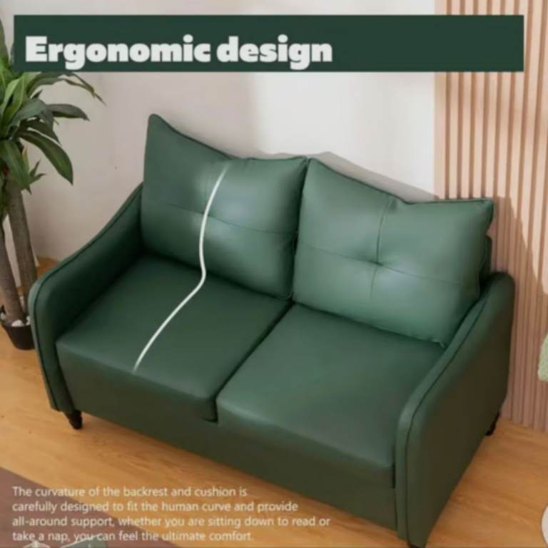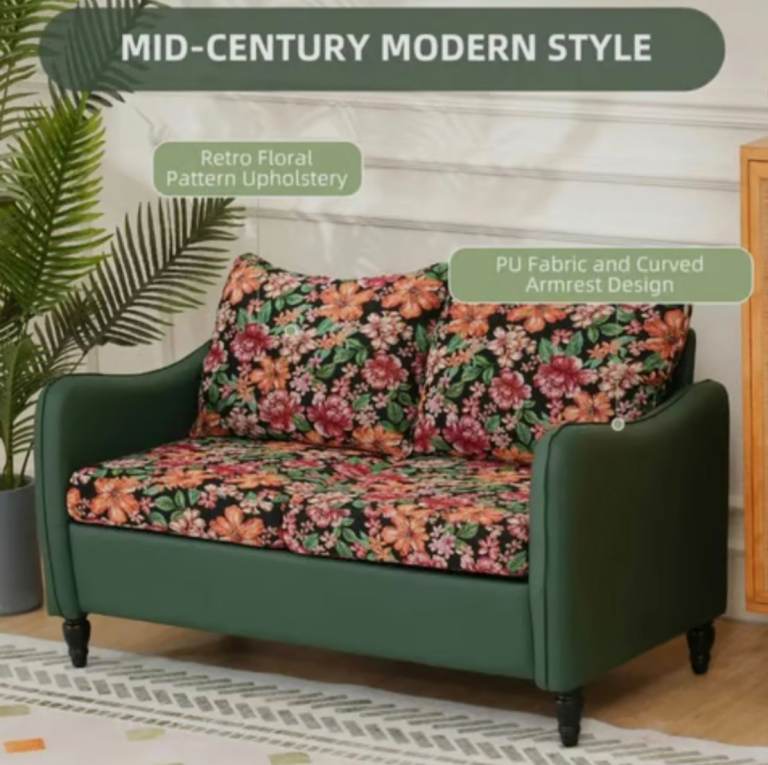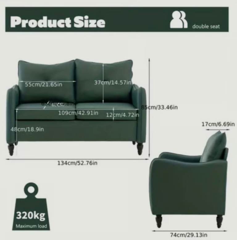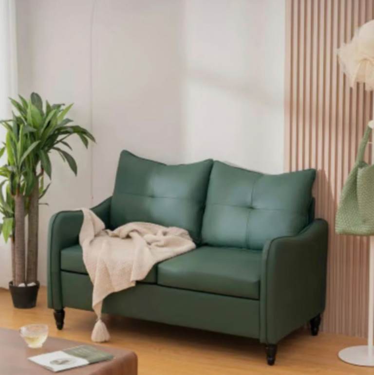Posting for 7+ monthsNew Mid-Century Modern 2 Seater Sofa PU Leather Couch with Foam Cushions Green
