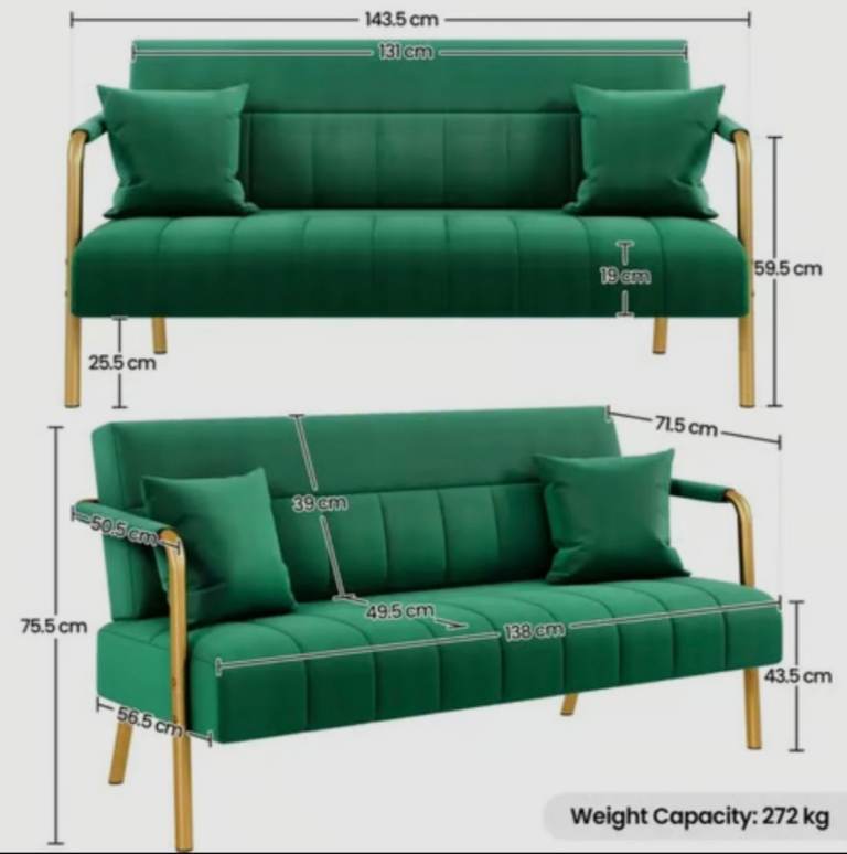 Posting for 7+ monthsNew Modern 2 Seater Velvet Sofa Couch Lounge with 2 Cushions Stylish Living Room Furniture Green