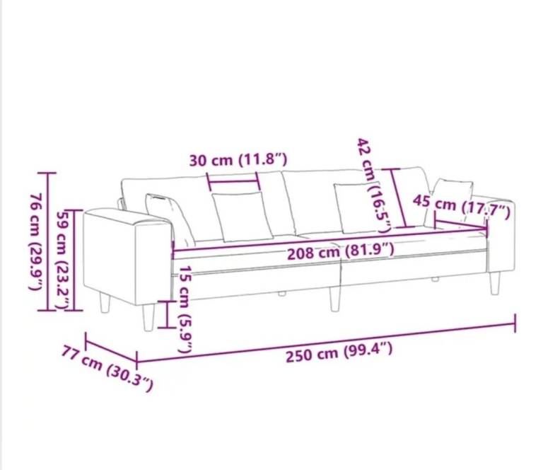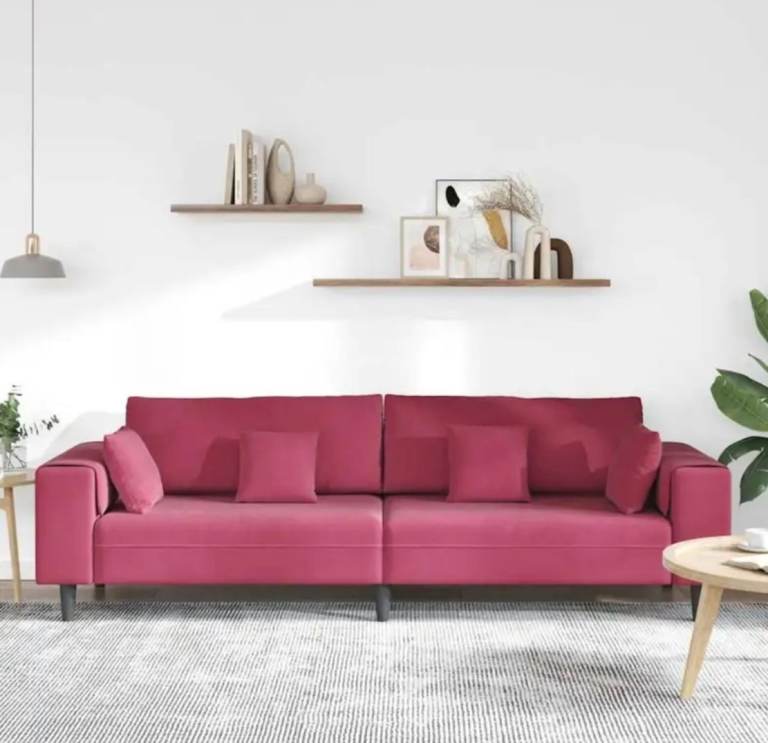 Posting for 7+ monthsNew Modern Velvet Sofa with Cushions – 3 Seater 208cm Couch Settee, Wine Red