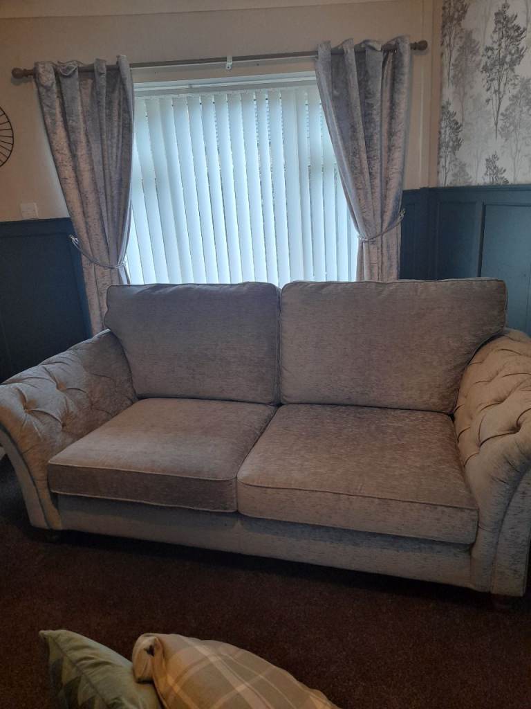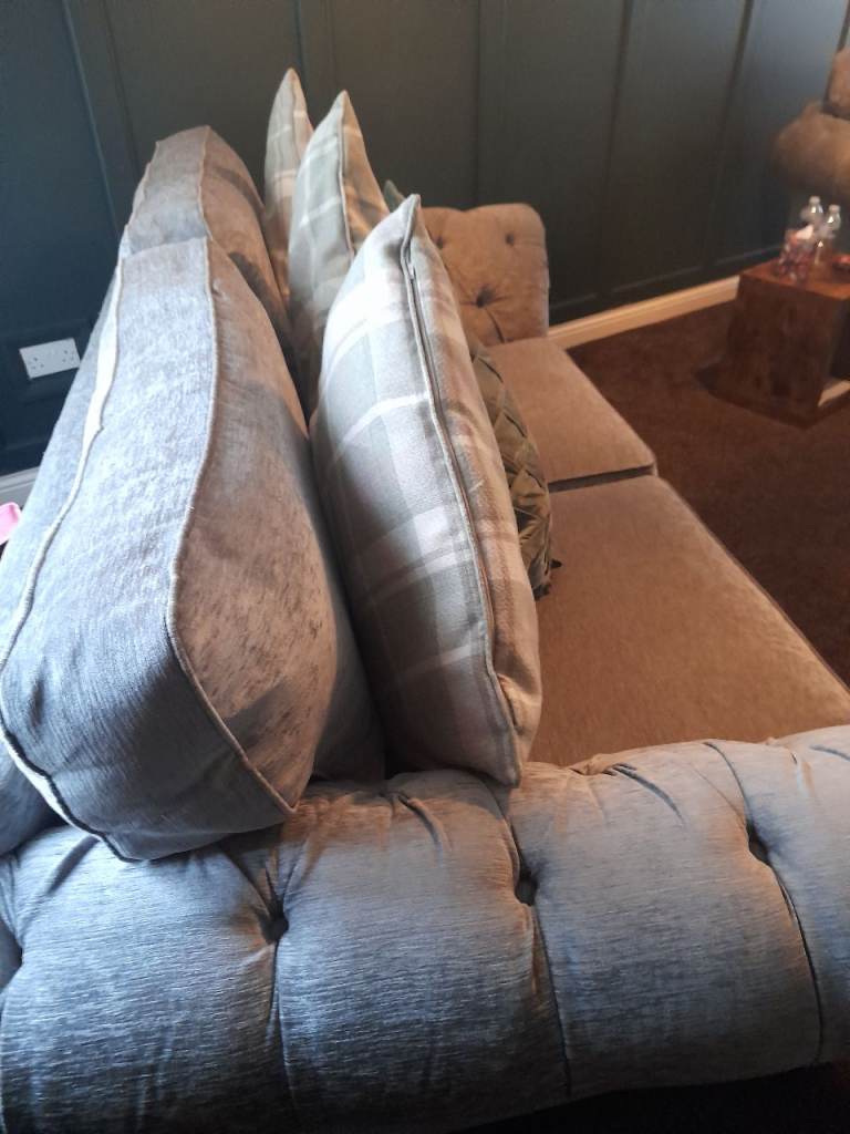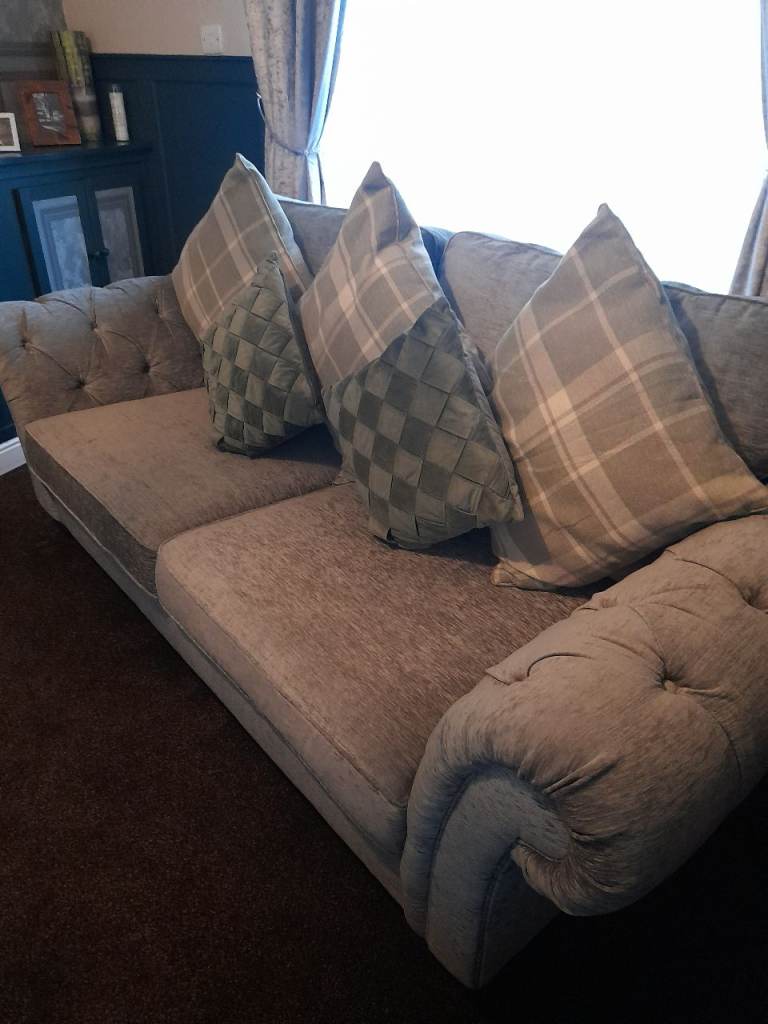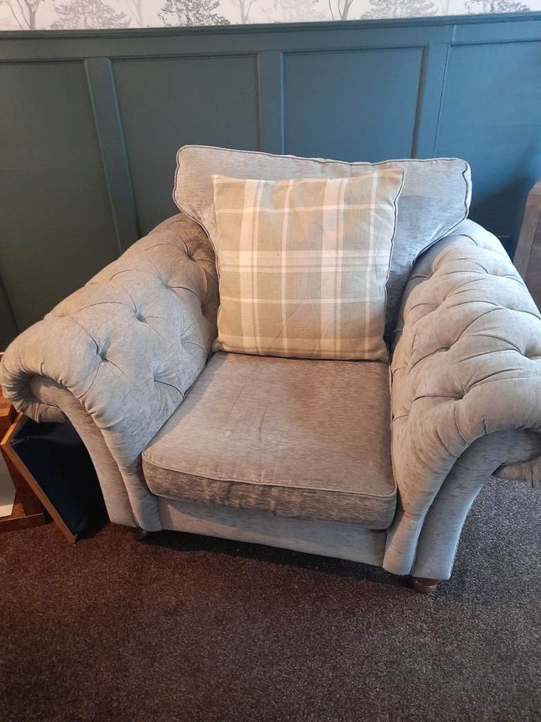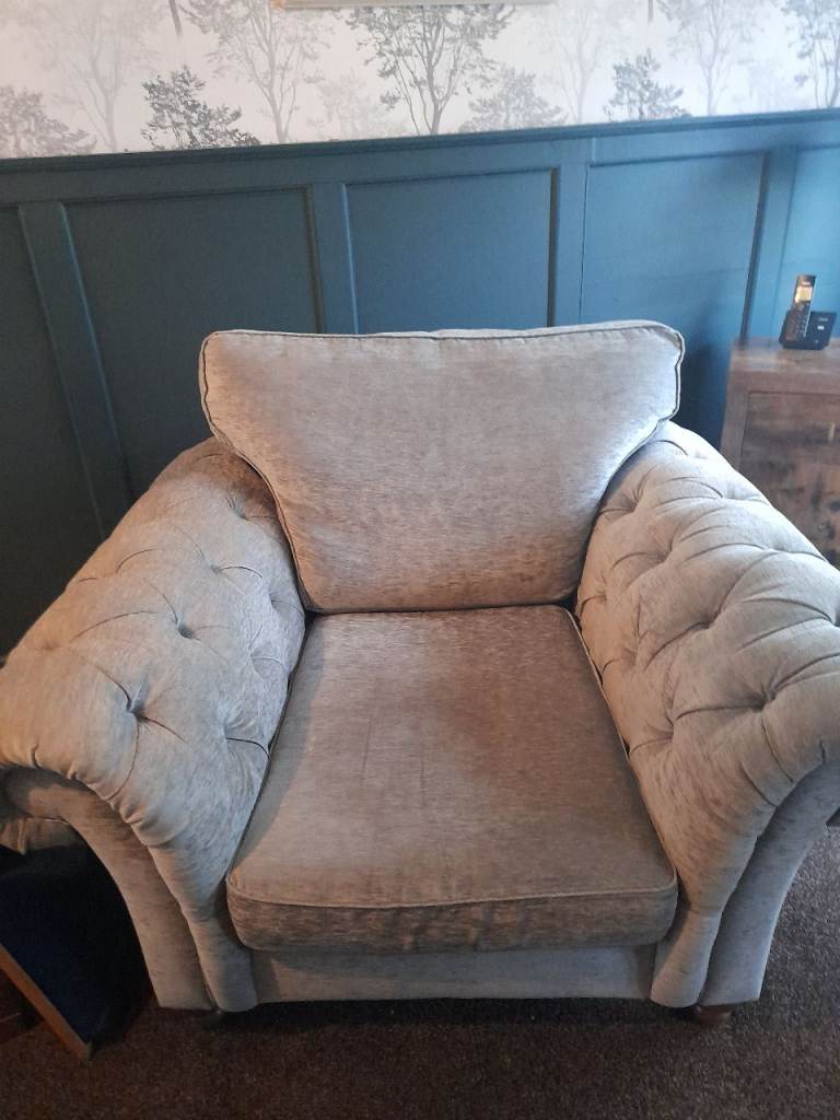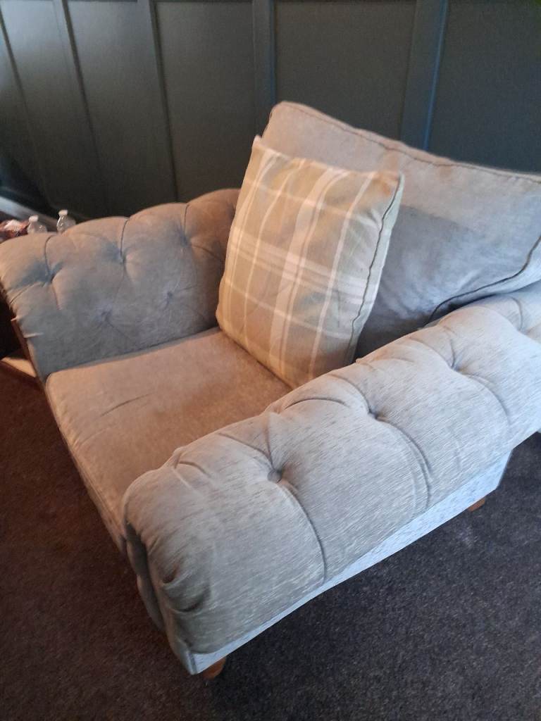 Selling in perfect condition a next 4 seater sofa and large chair. Sofa size length 88" depth 44" height40". Chair measurements width 51" depth 44" height 40". Need van to collect as large sofa set. As I said perfect condition look at pictures.only had it 18 months.from smoke and pet free home Only Selling as down sizing.purchased from westbridge furniture for £1600.Any questions just ask thanks