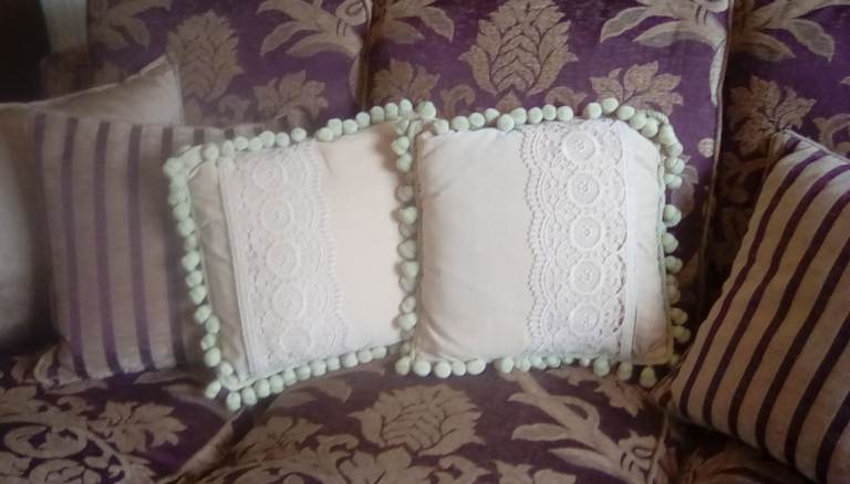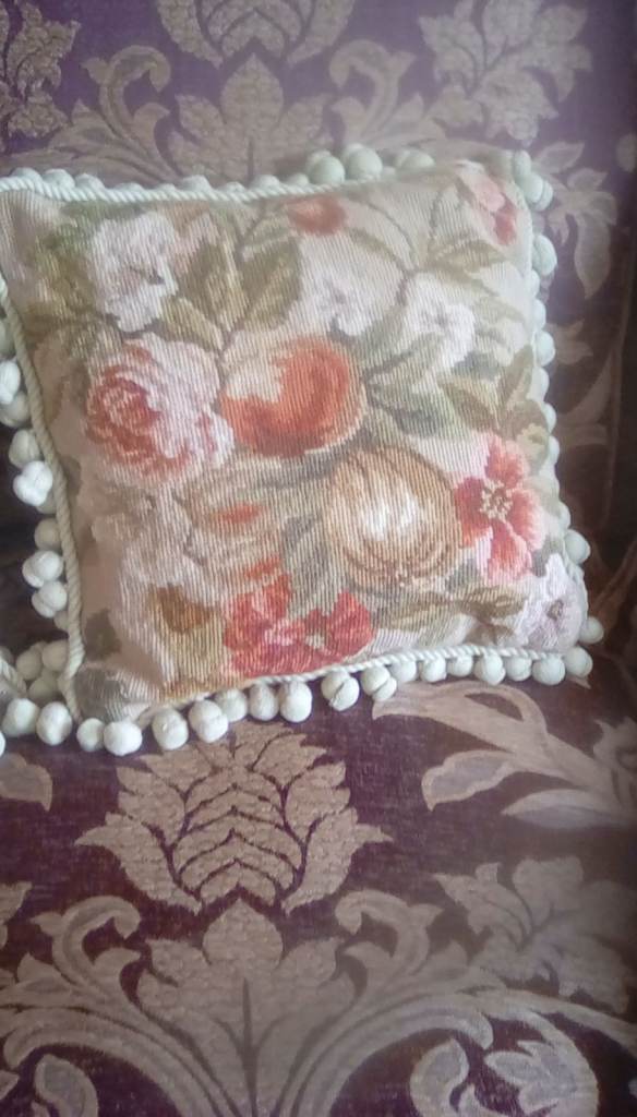 These cushions are stunning - embroidered by hand - and with quality 'bullion' tassel fringing all round - velvet backed with vintage lace trim. They were very expensive when purchased and are in excellent condition and from a smoke free home. Will accept £15 each or £28 for the pair. Please note: Images do not really capture their beauty - the colours are more vibrant in the 'flesh'.