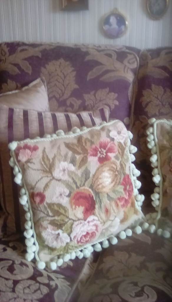 PAIR of EXQUISITE WOOLWORK TAPESTRY CUSHIONS