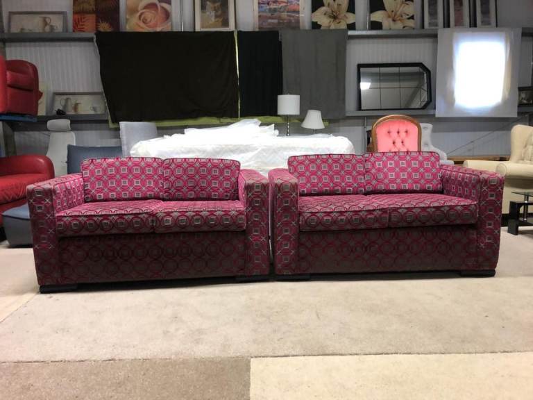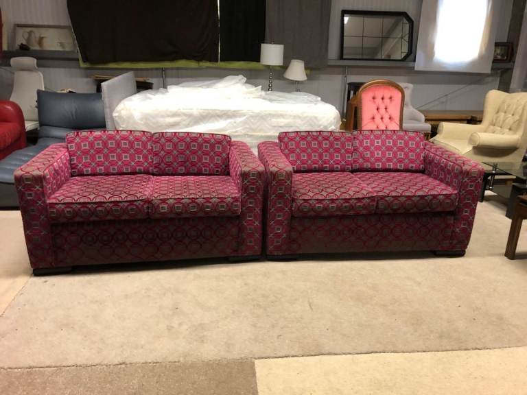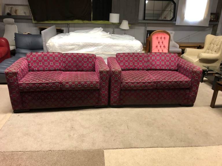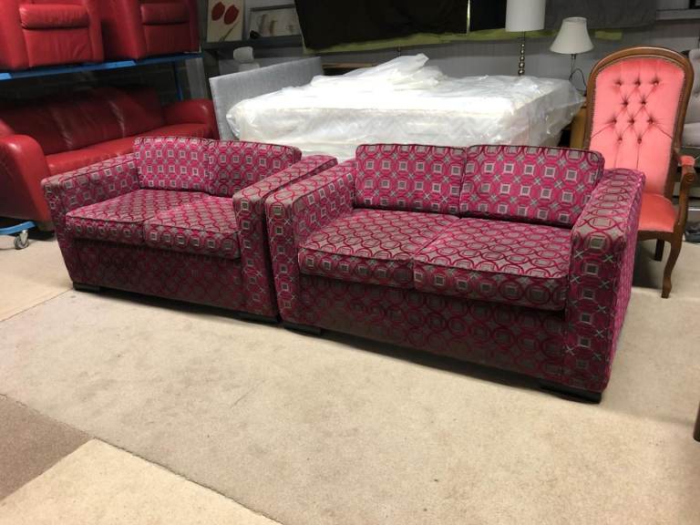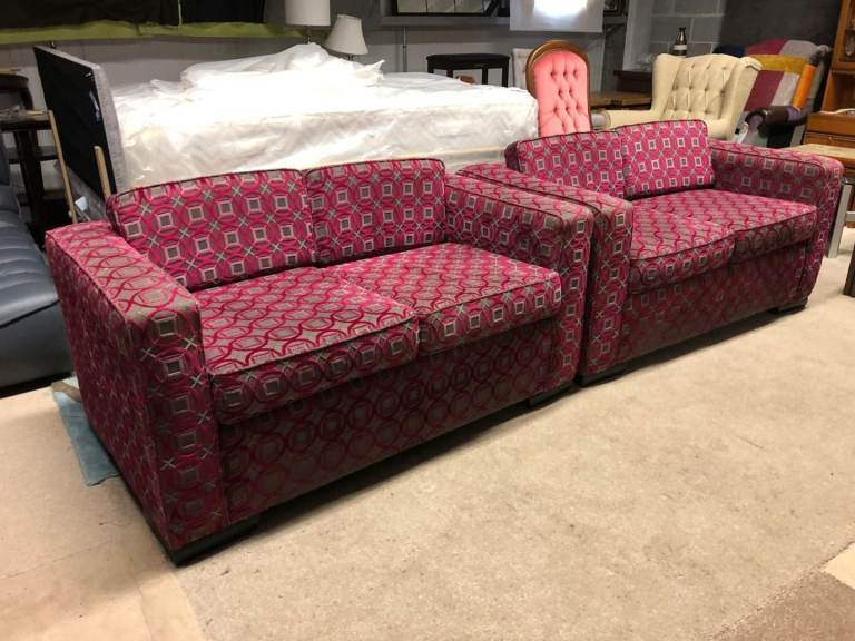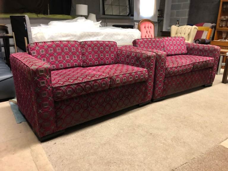 Pink and Grey Pattern Fabric 2 and 2 Seater Sofas