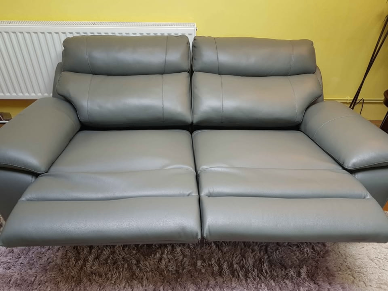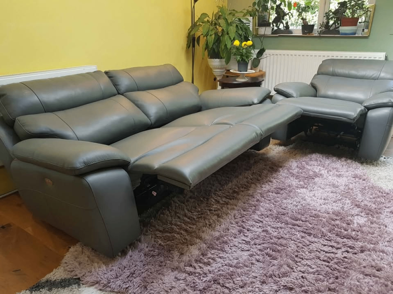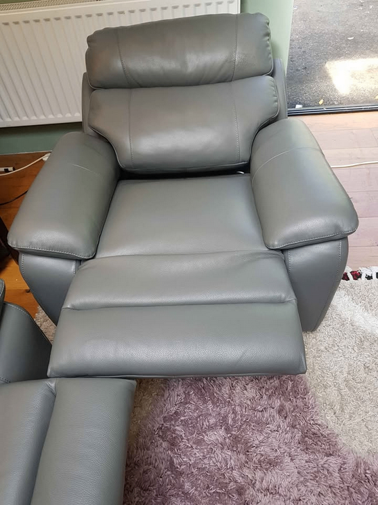 QUALITY DESIGNER ITALIAN MADE PATRIZIO 3 SEATER + 1 ELECTRIC RECLINER LEATHER SOFA - ANTHRACITE