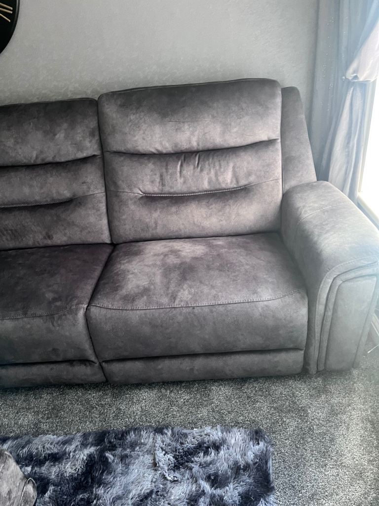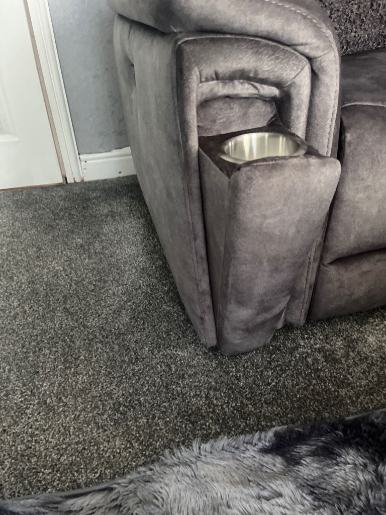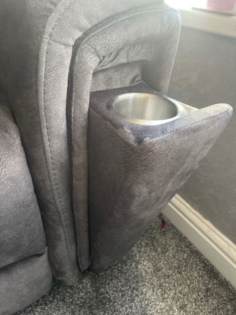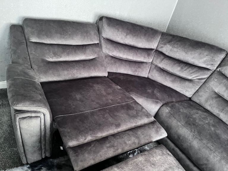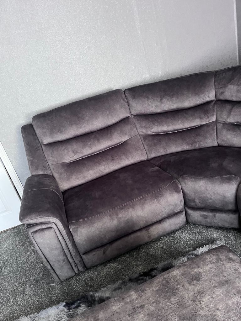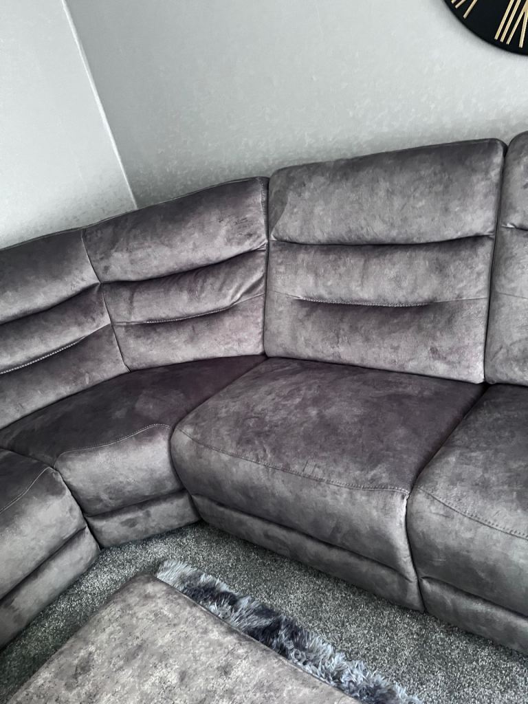 6 month old Grey corner soft touch recliner with usb plus phone charge, cup holders