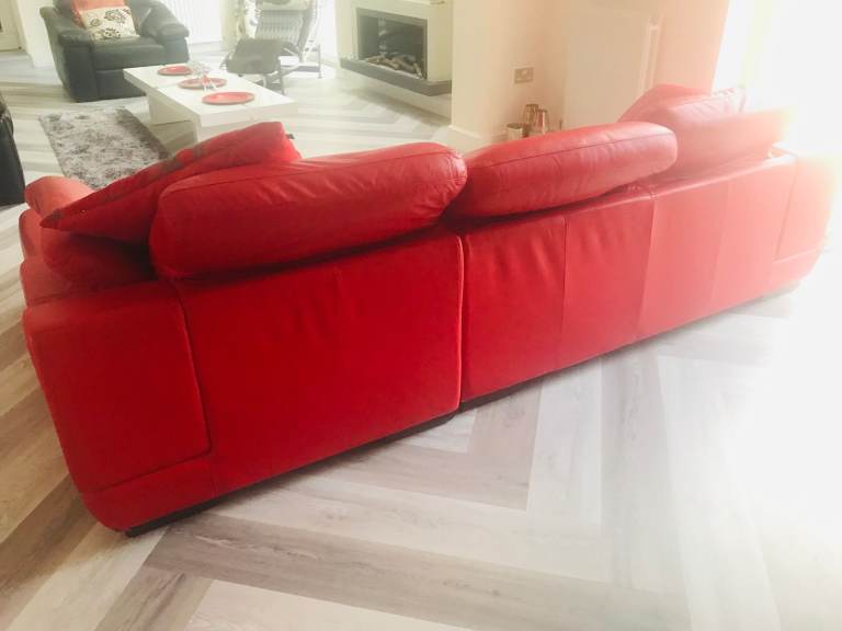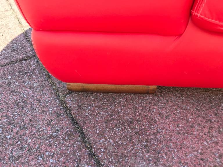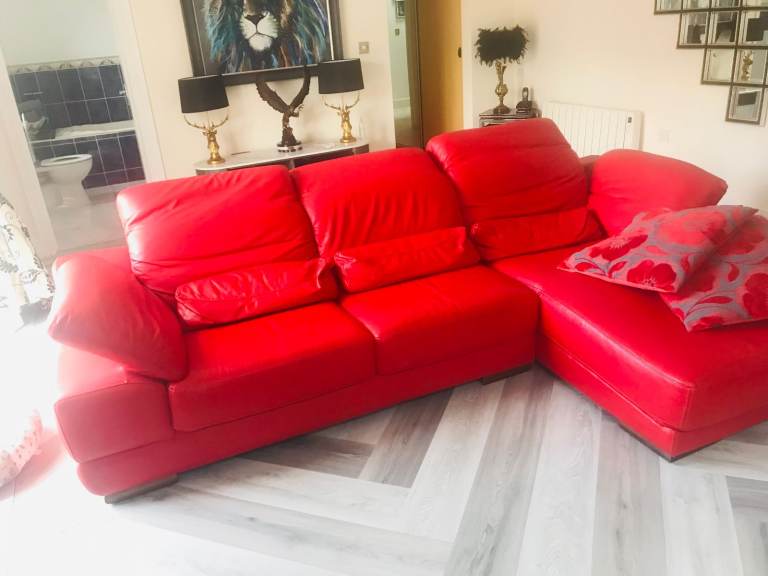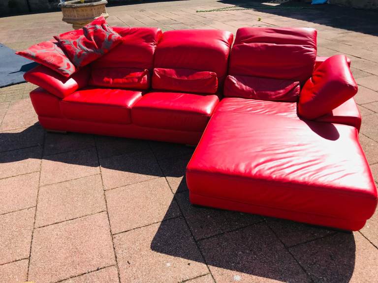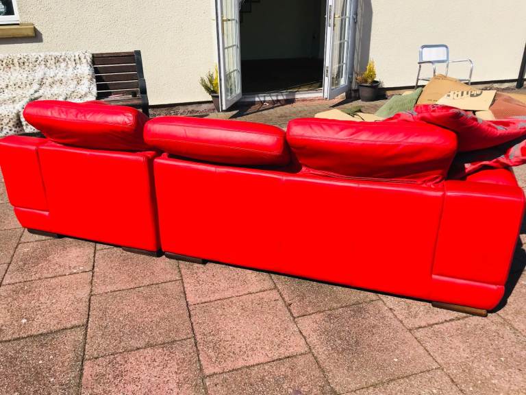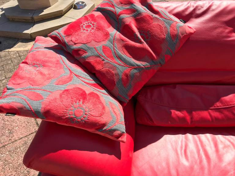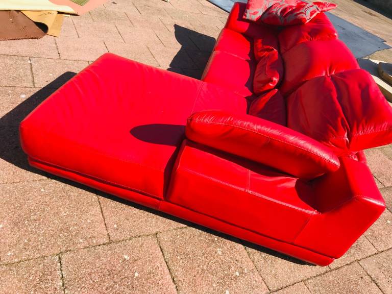 RED LEATHER LOUNGER SOFA 3 SEATER SETTEE + CUSHIONS