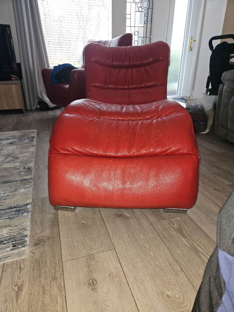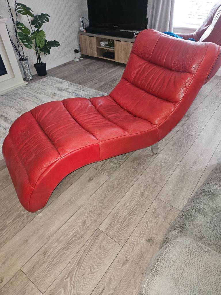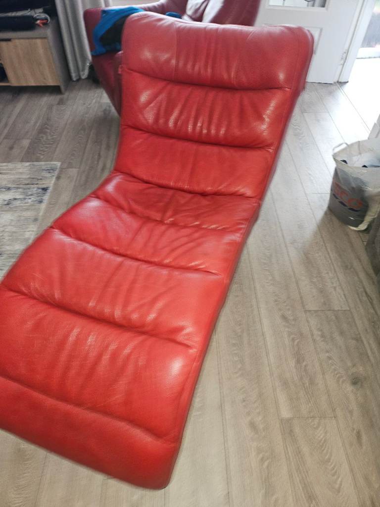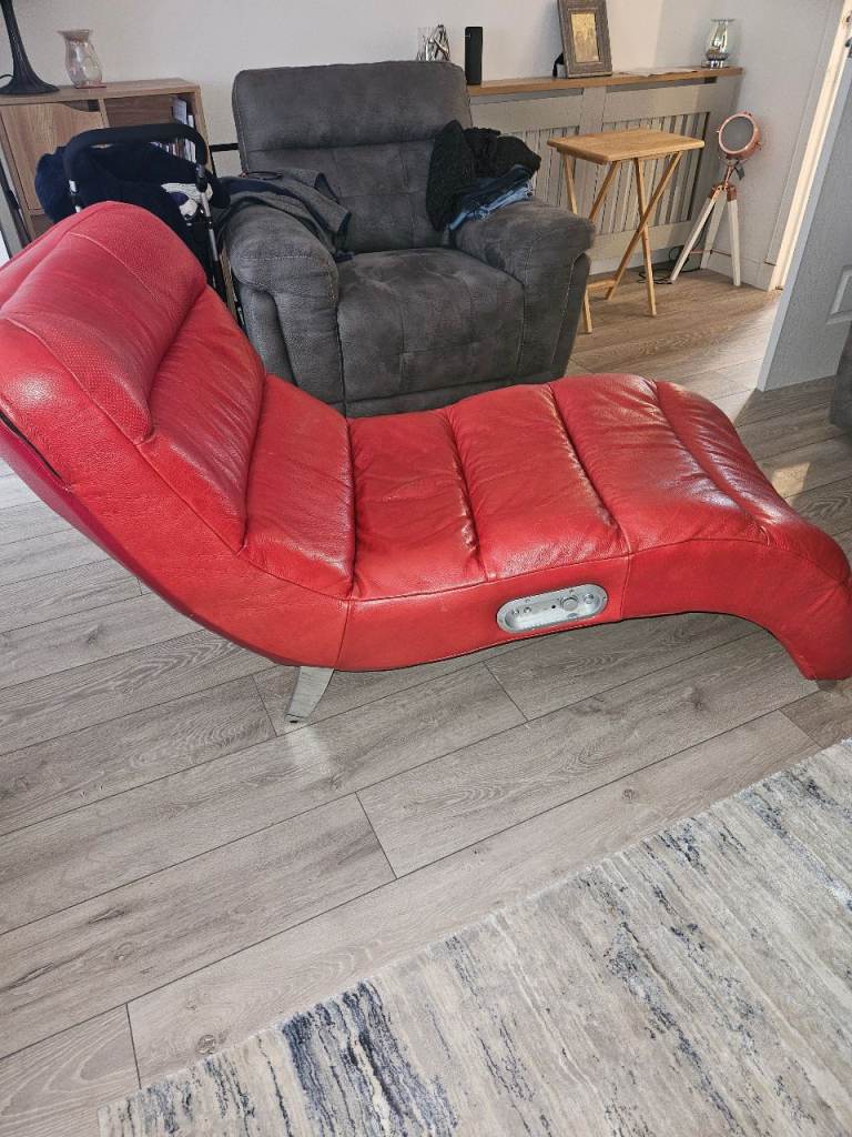 Chaise longue? In red leather. Originally had Bluetooth speakers inbuilt. Some wee scuffs here and there but very serviceable. Mibbes perfect gaming chair?