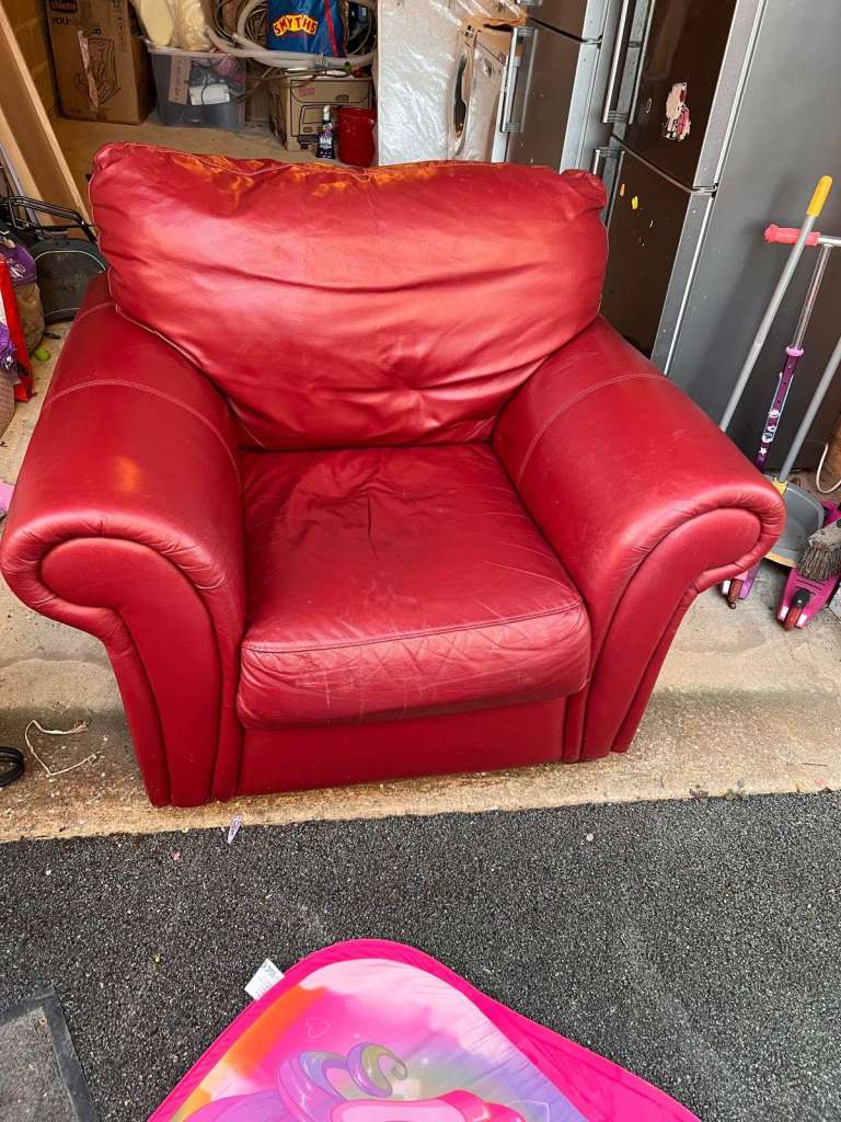 Posting for under a monthRed Leather Sofa Set – 2 Seater + Armchair – for free , Collection Friday or weekend Only