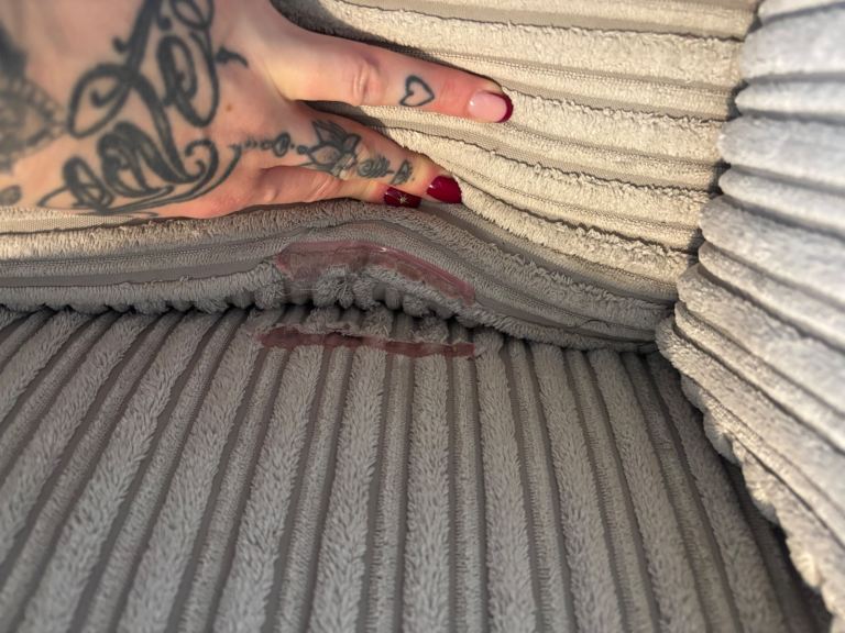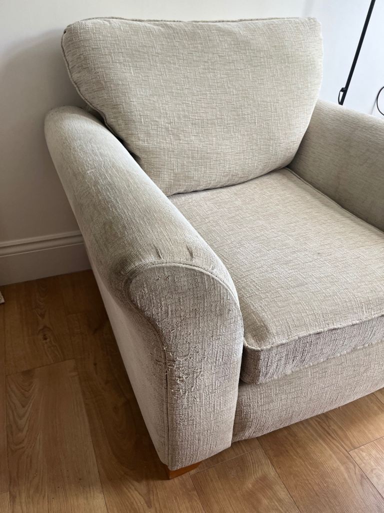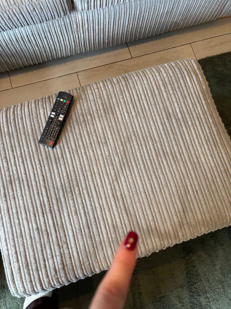 Overall, the sofa is in great condition with just the occasional small mark. I’m currently in the process of washing all the cushion covers so it’ll be nice and fresh for the new owner. The footstool cover can’t be removed, and where I’ve given it a clean, it’s dried a little patchy (as shown in the photos) — it’s not a stain, just from cleaning, and will likely come up beautifully with the right method.
