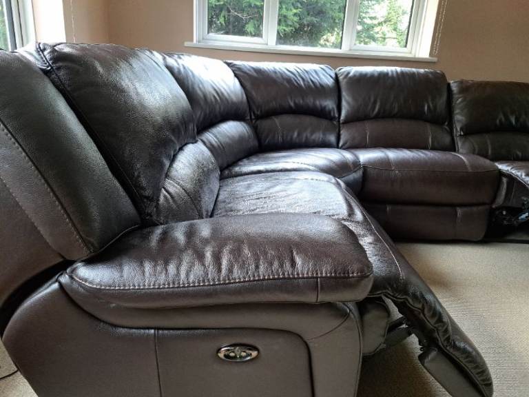 Ronson RHF complete corner sofa with multiple reclining points including 2 electric button controlled and 1 additional manually controlled.