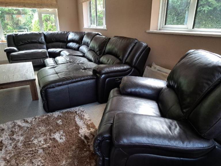Ronson RHF Corner Sofa plus power recliner chair in walnut super elite