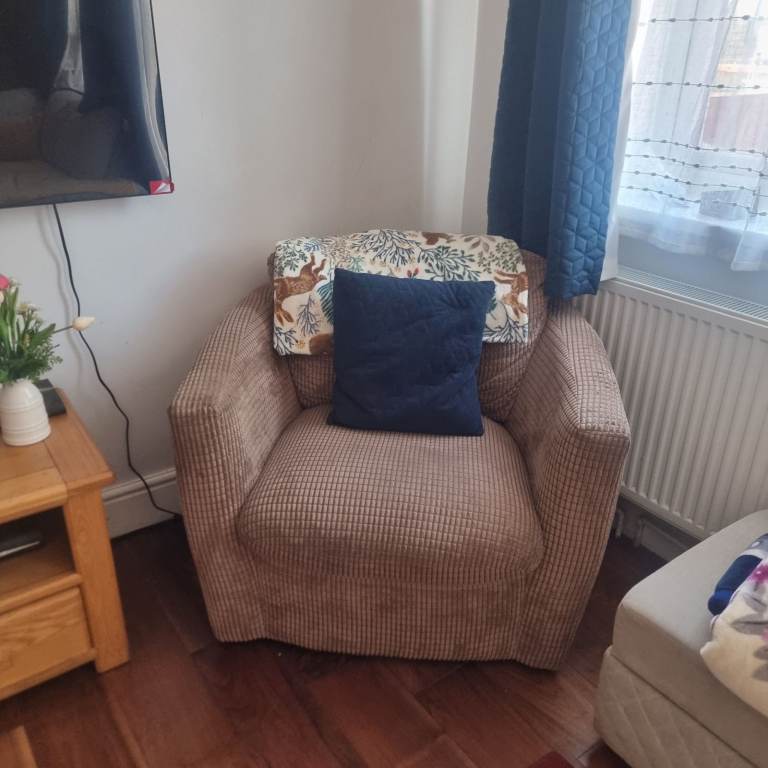 Posting for 6+ yearsRound swivel comfy armchair