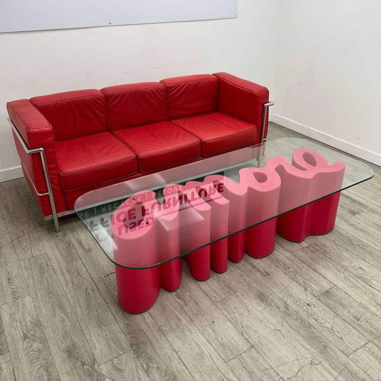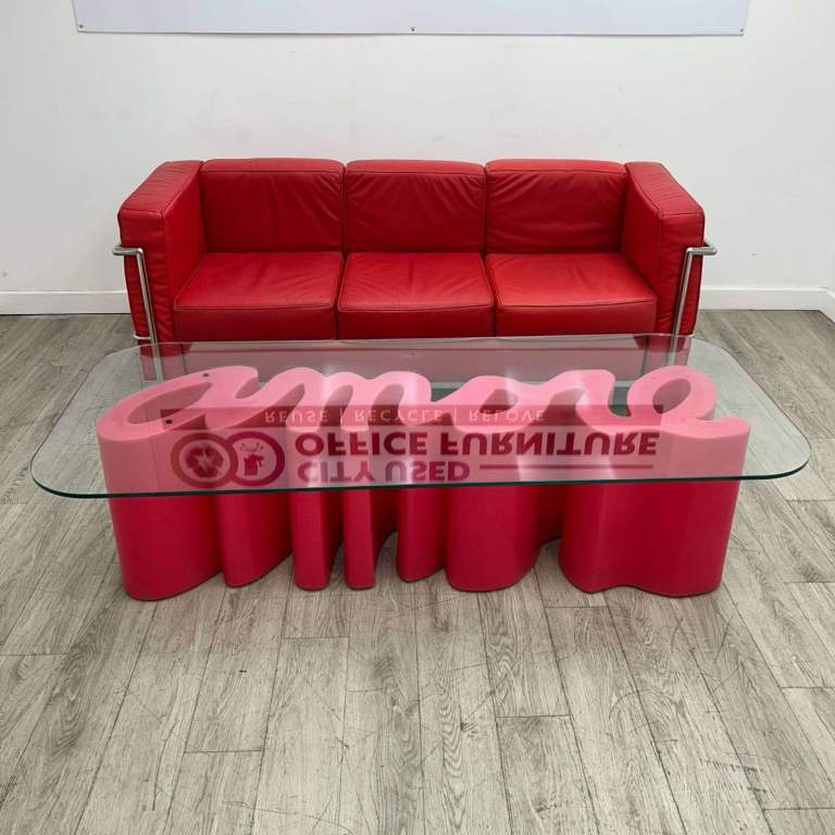 SET – 3-Seater Sofa, W1800mm w/ Coffee Table, Glass / Red Graphic, W1600mm