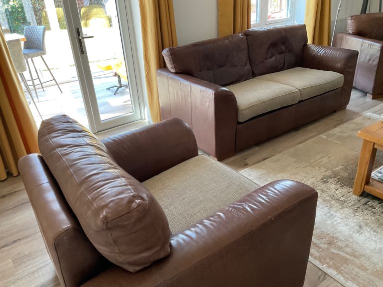 Set of 2 three seater leather sofas from Harveys