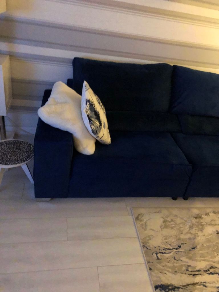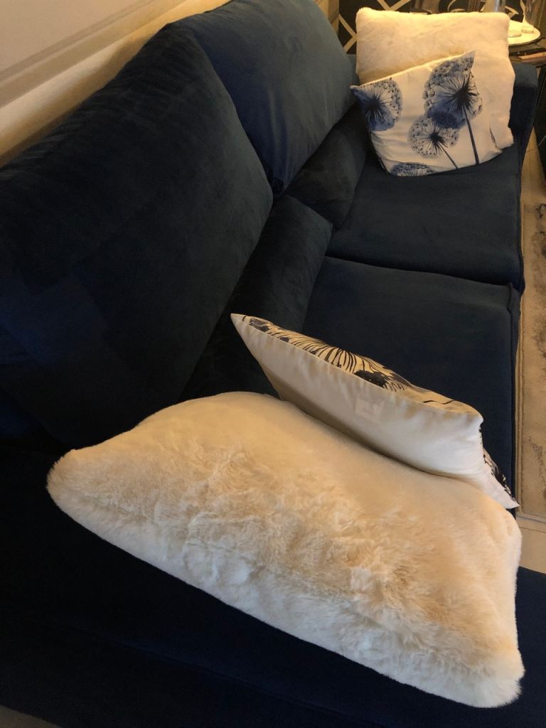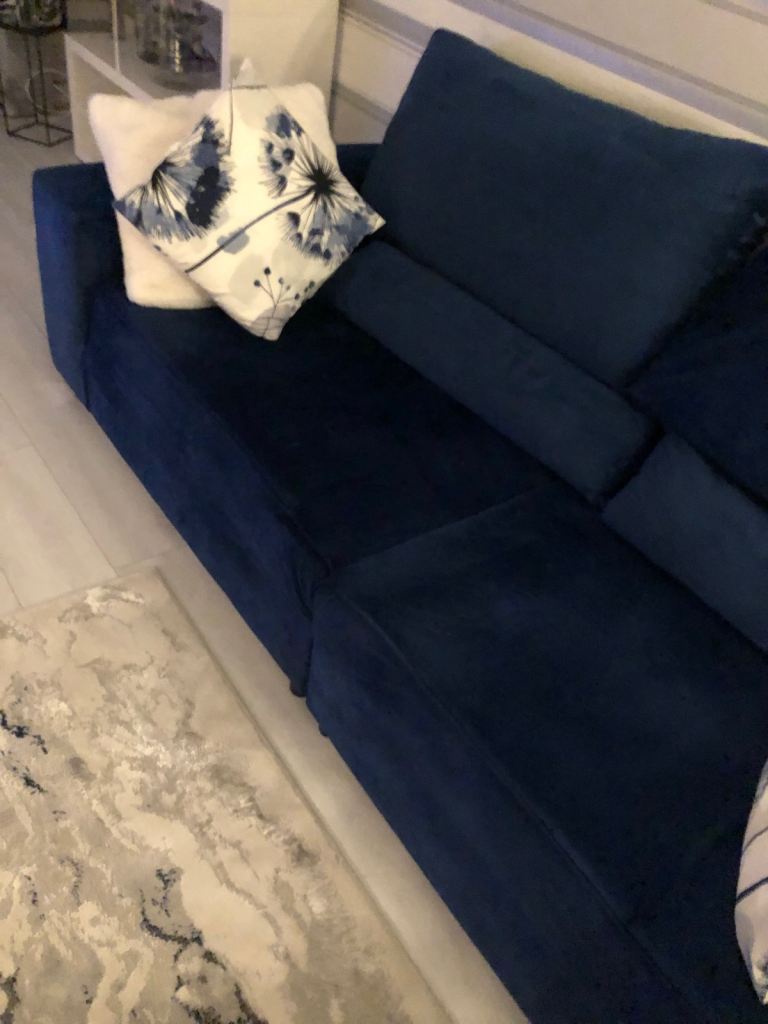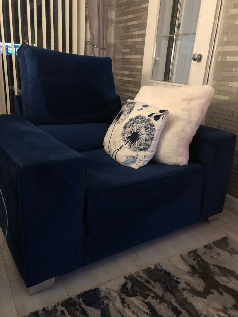 Beautiful royal blue velvet 3 seater settee and matching XL WIDE chair in very good condition.