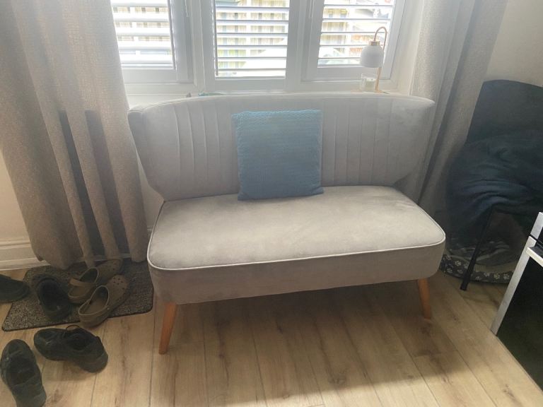 2 seater light grey loveseat ‘ish’ / sofa - in really good condition. 115cm wide and 60cm deep. Wooden legs.