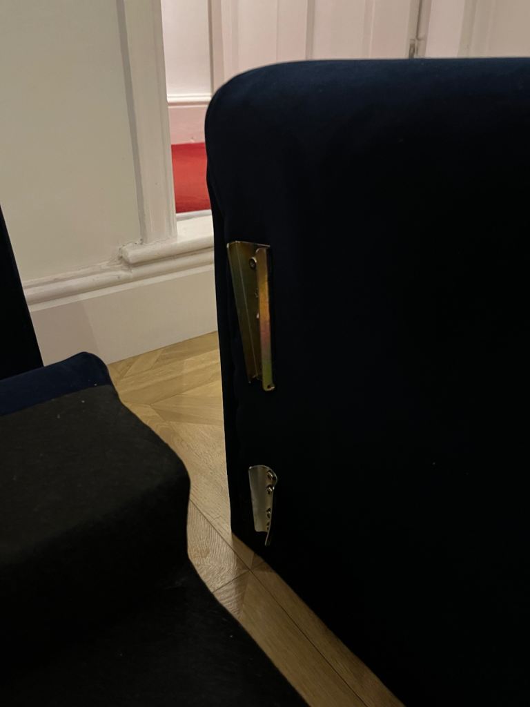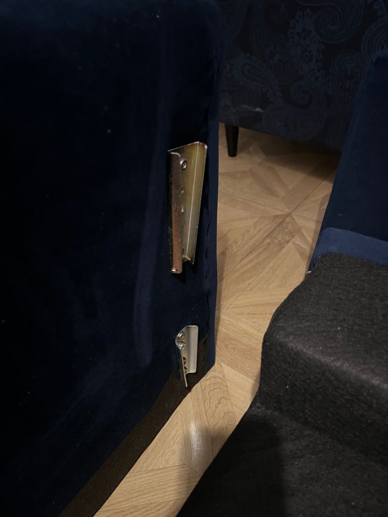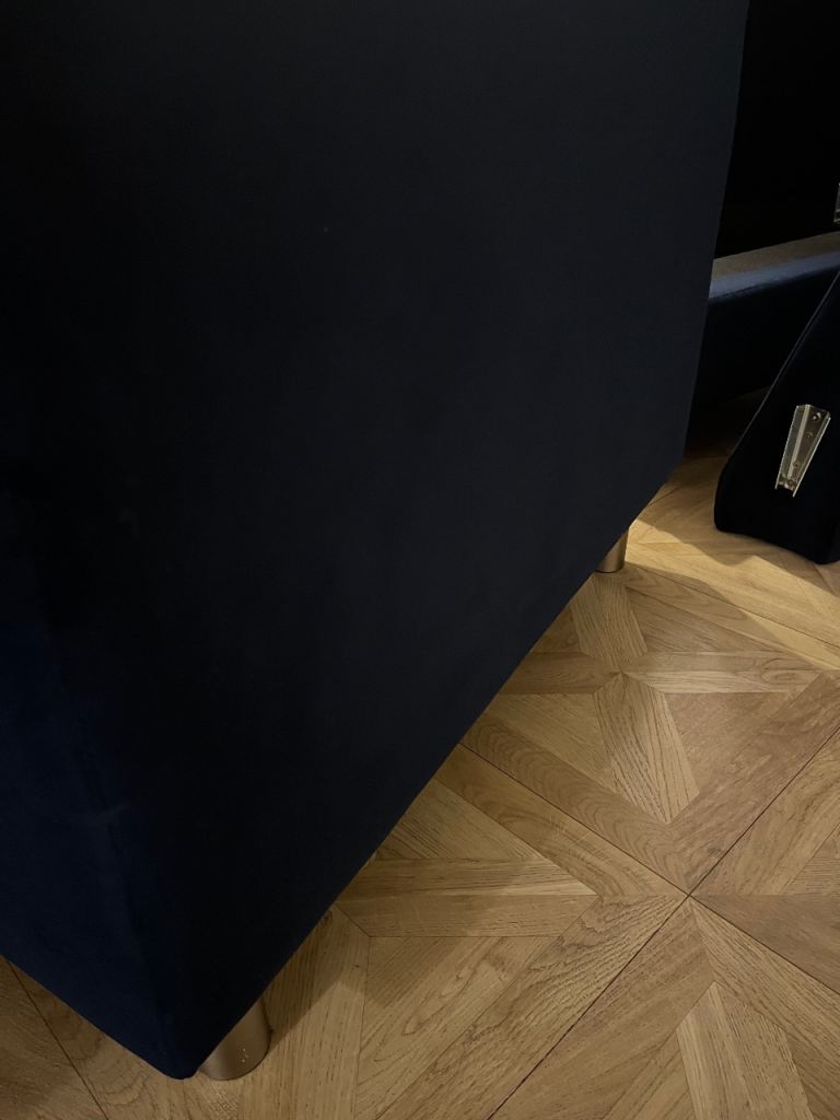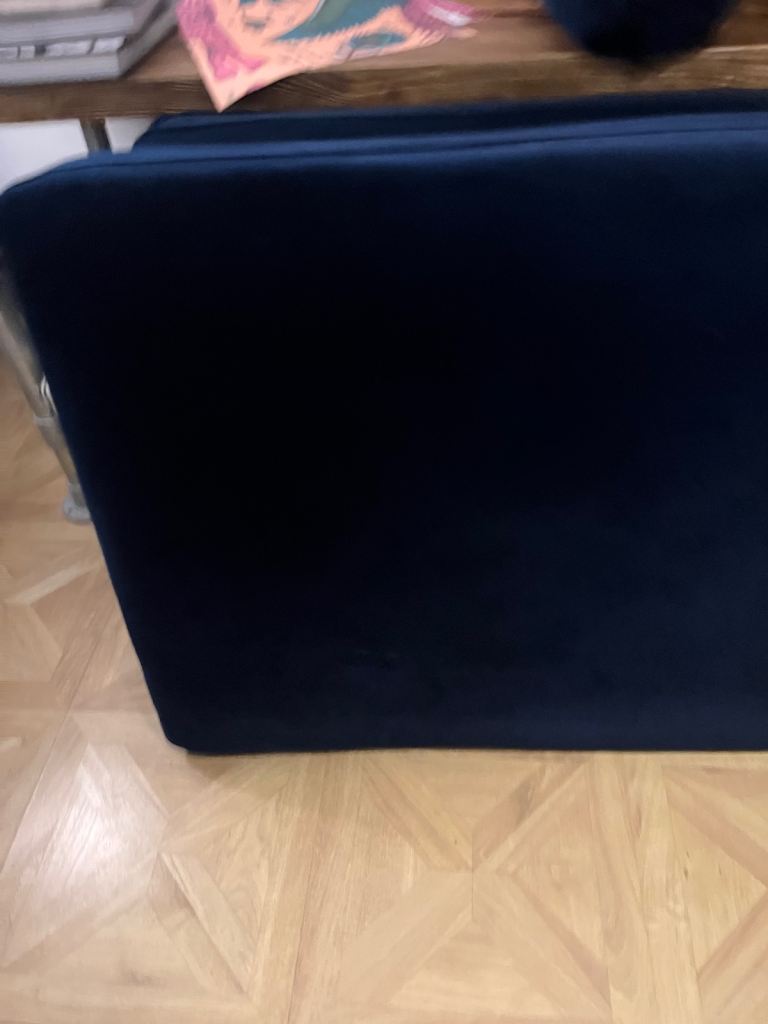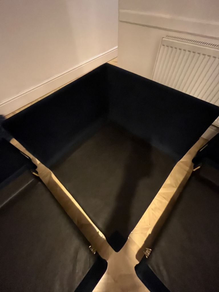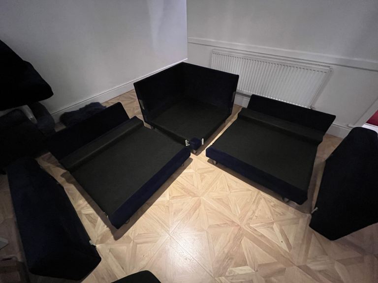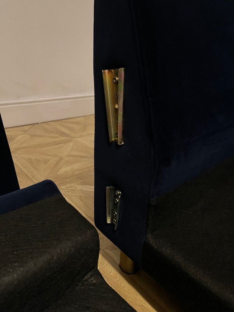 Snug - The Big Chill Corner Sofa Midnight Blue Velvet with metal bronze legs. In really good condition only used for 2 years SMOKE AND PET FREE. Click Lock system makes it easy to break down and manoeuvre into any room (which is the reason we originally bought it).