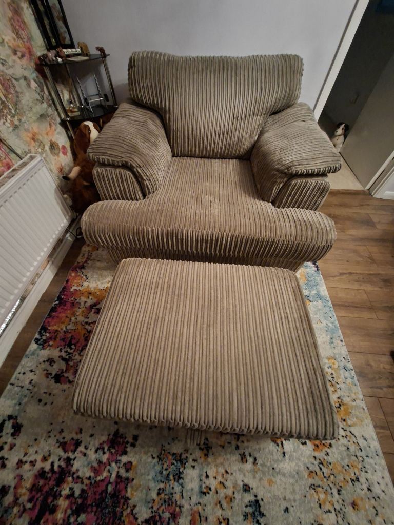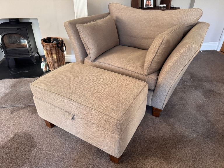 Snuggler chair & matching foot stool with a storage compartment