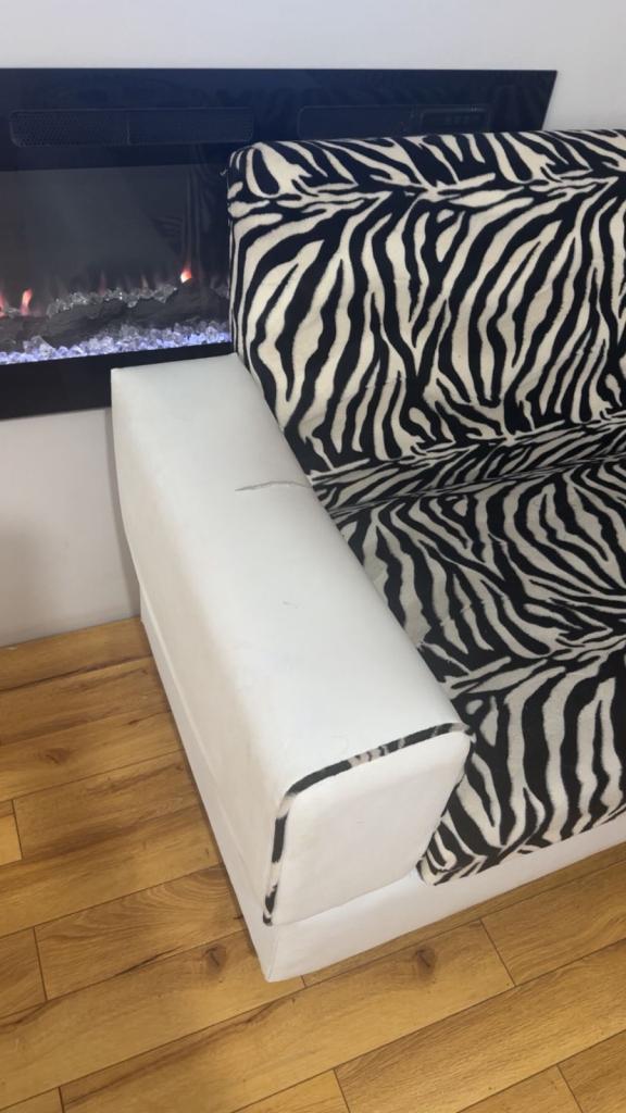 Reason for selling changing my colour of house only had it 2 months little split on arm can be covered with blanket/throw. Sofa lifts up for storage