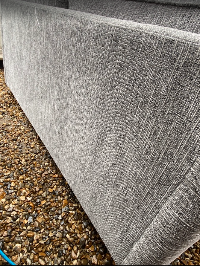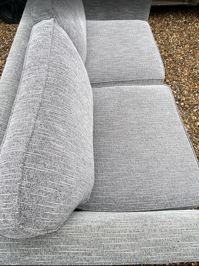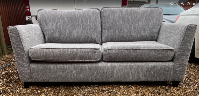 Sofa 3 Seater Sofa. Sofa is in excellent clean condition. Foam seat cushions with deep fibre filled back cushions. Dark wood feet. Grey fabric. Measurements width 191cm x depth 93cm. Lovely sofa. Ready for collection or can deliver for a small charge. Bargain £199. Thanks.