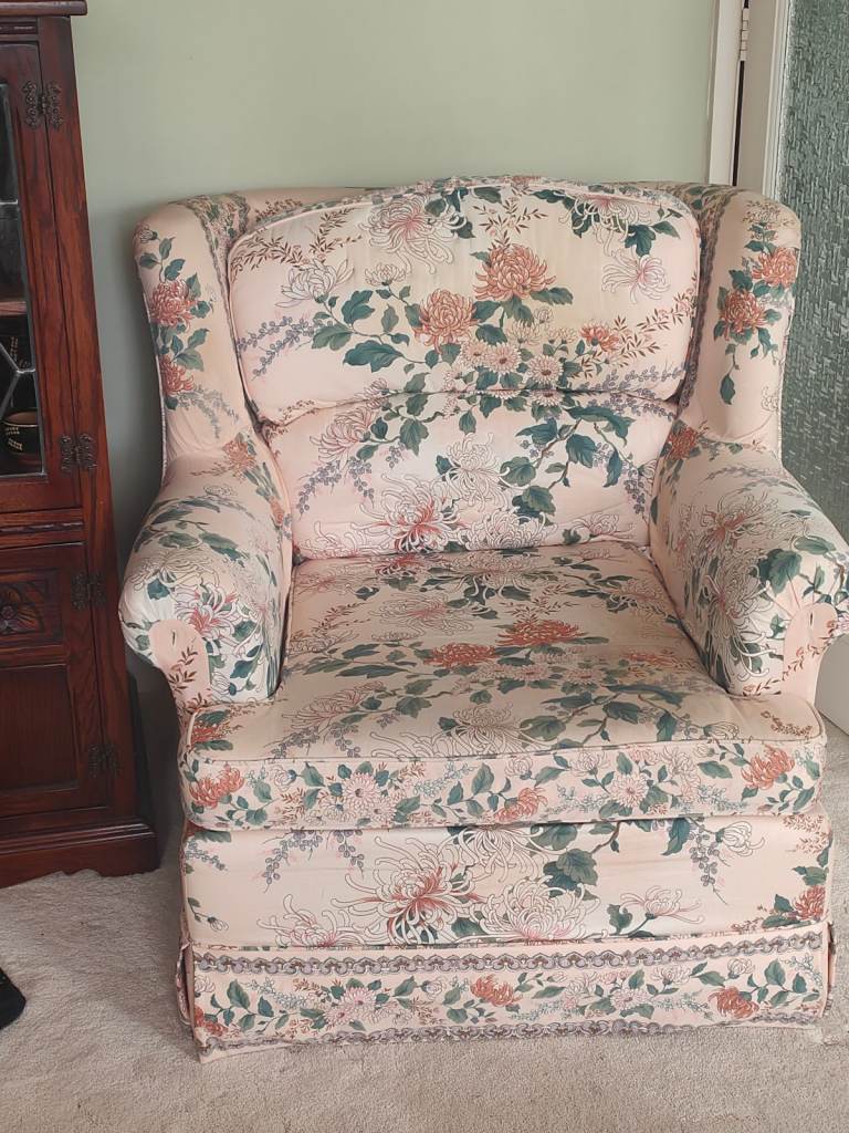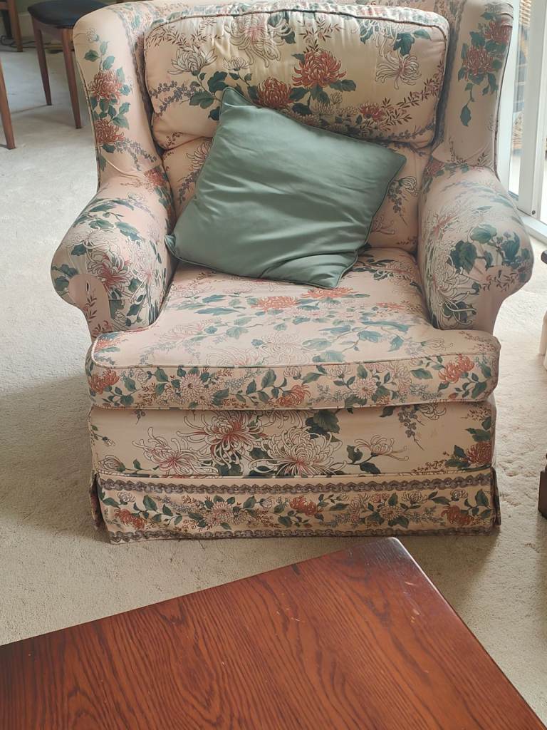 M&S two Seater sofa and three armchairs. Floral design. Old but good condition.