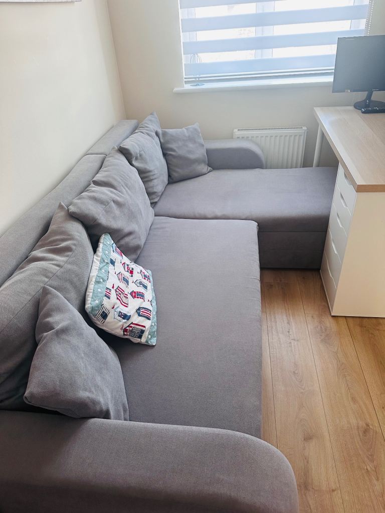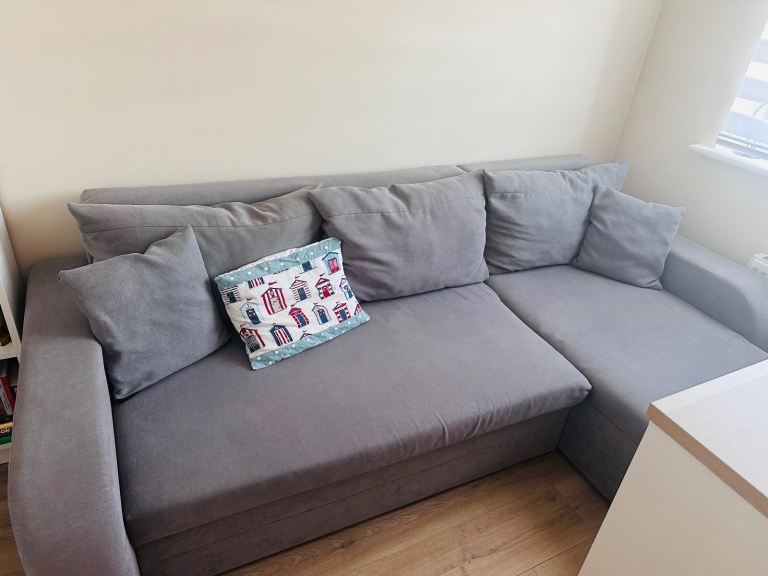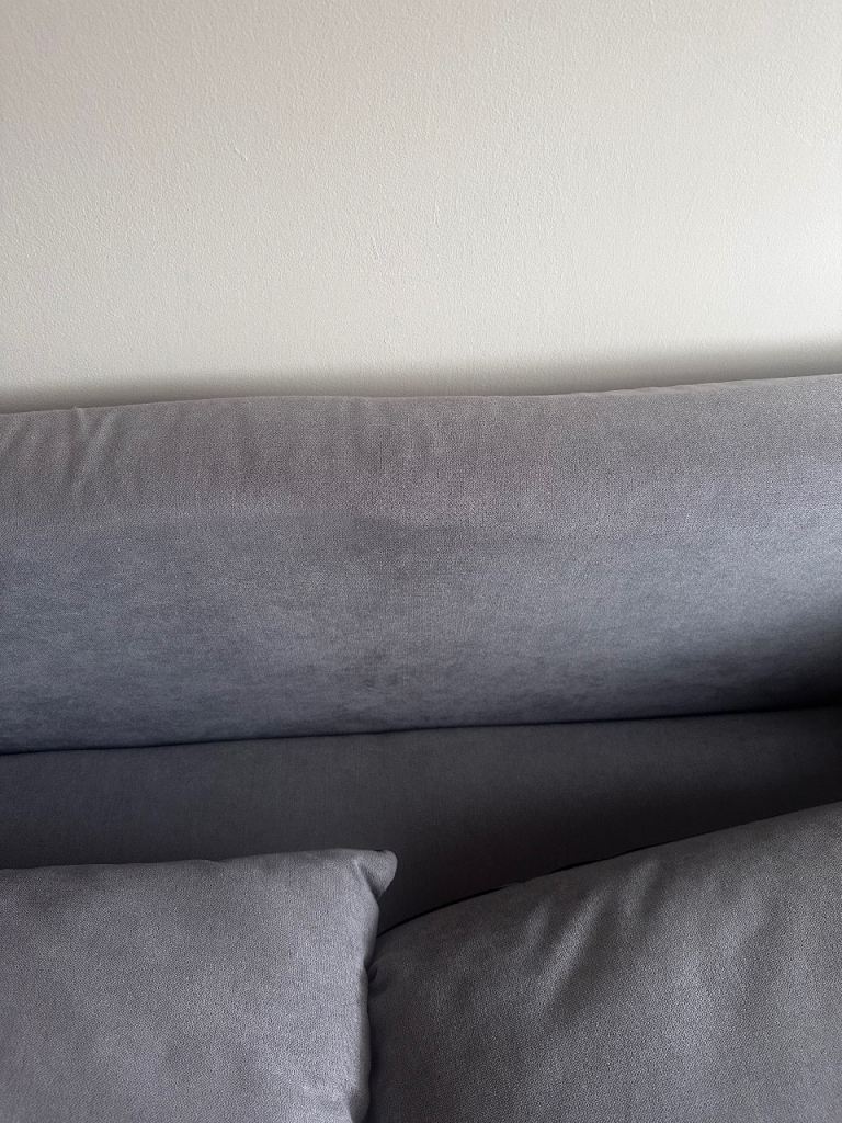 The sofa bed is in very good condition and was purchased two years ago. We recently moved house and needed a larger one for our living room. There is a small crease in the padding at the top, but it’s only visible when the cushions are removed.