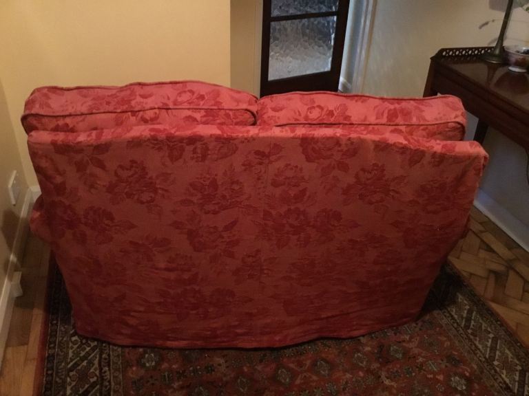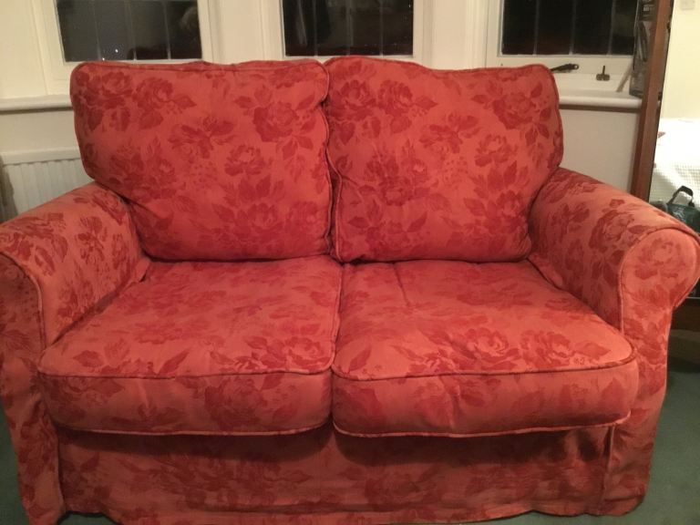 A HIGH QUALITY Collins&Hayes 2 seater SOFA with a red COTTON COVER in EXCELLENT CONDITION