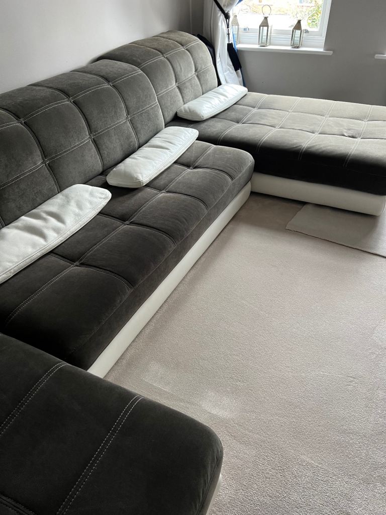 Posting for 1+ yearsSofa in leather and grey microfiber fabric