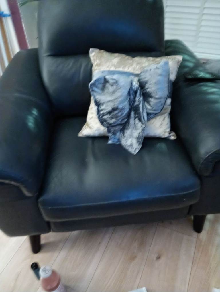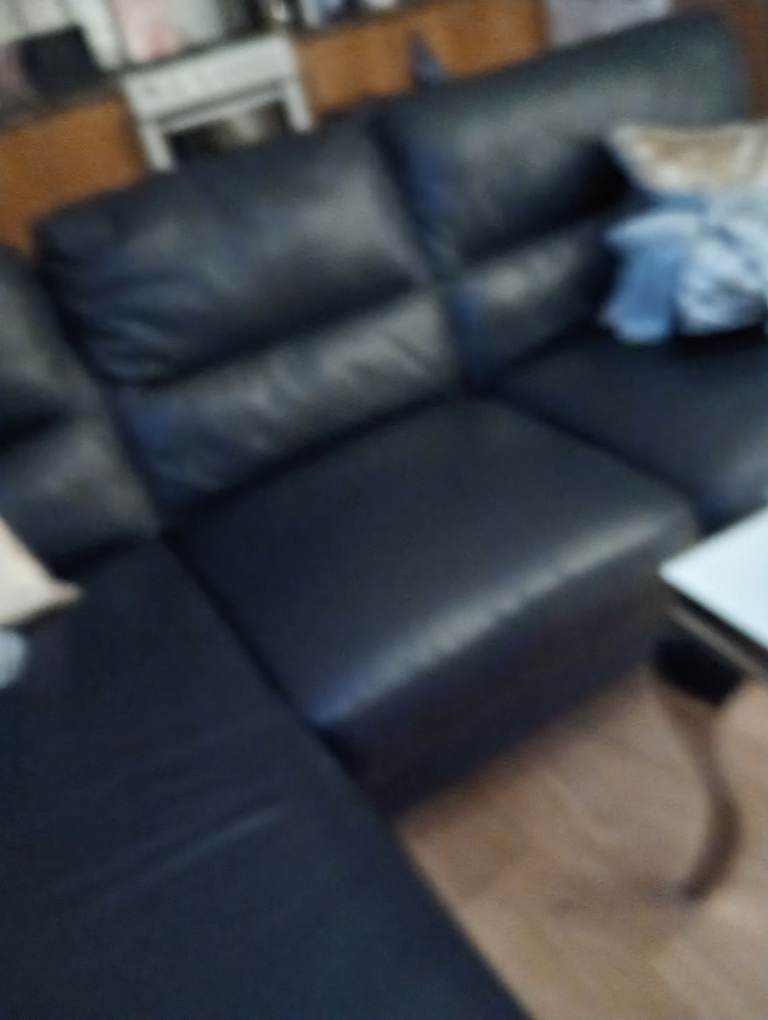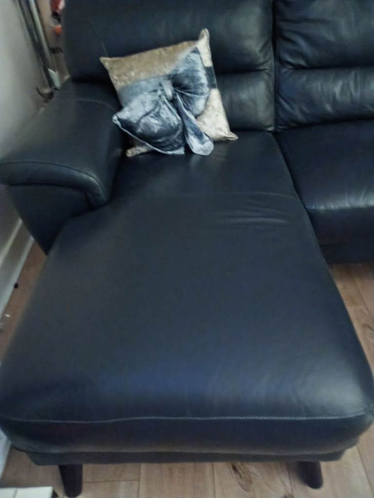 Nearly new perfect condition navy leather sofa chaise lounge at 1 end also navy leather electric recliner.moved home downsized to just myself & all is too large for flat & for me on my own