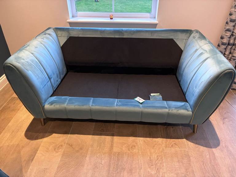 Sofology Gabrielle 2 x 2 seater soafer in plush teal mix with gold trims with decorative cushions - smoke and pet free home -