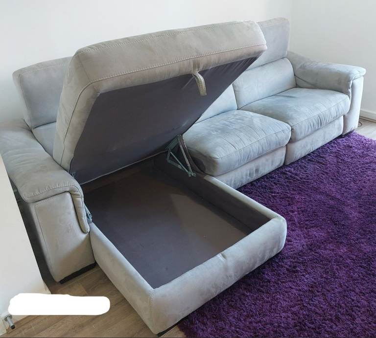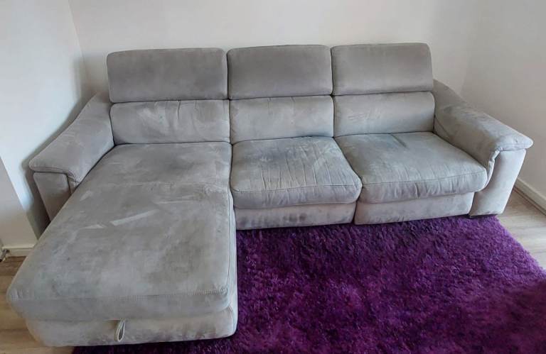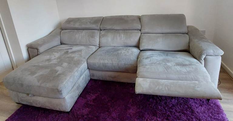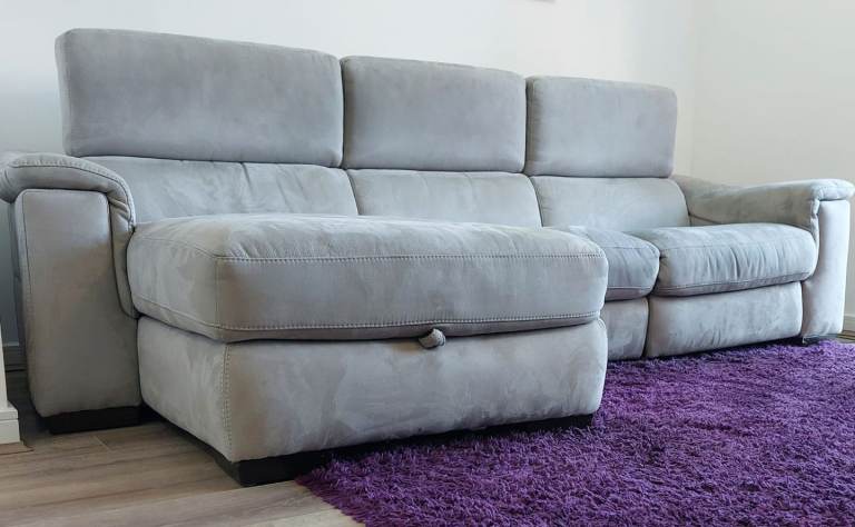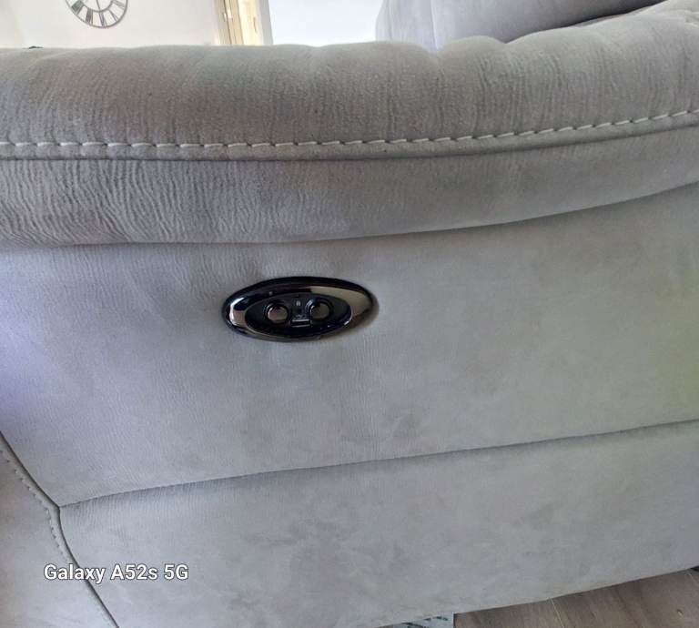 Posting for under a monthSofology 3-seater grey fabric sofa, chair with power recliner, storage