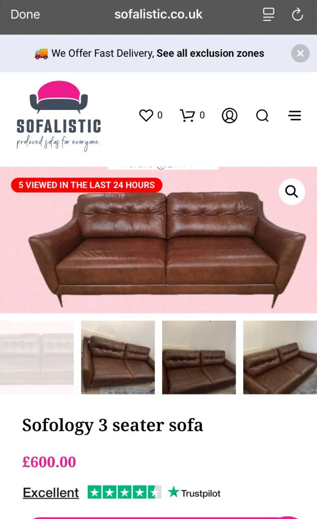 Selling a gorgeous leather sofa and matching footstool. This couch is serious style and comfort - the smooth milk chocolate leather adds instant luxury and style to any room.