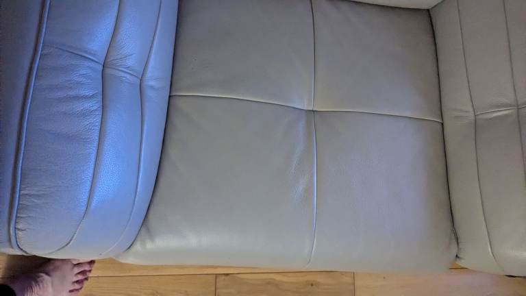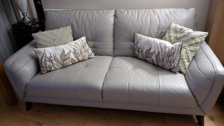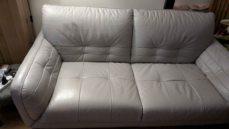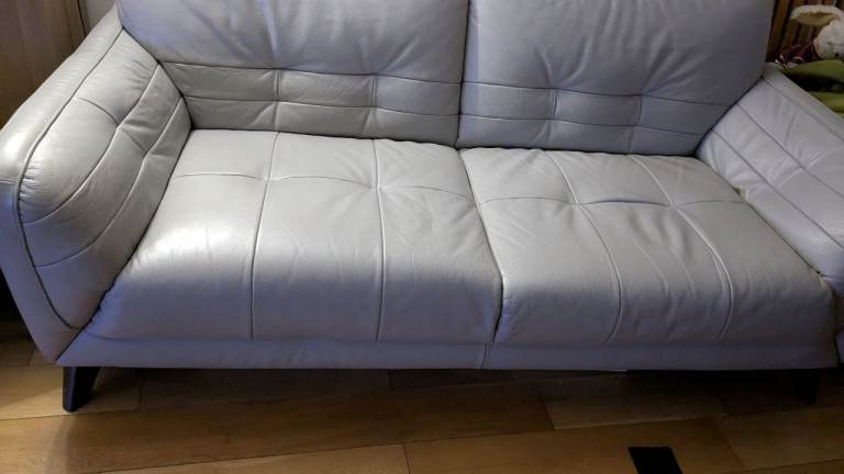 Pale grey leather sofas x2 + large chair,only really used 1 of the sofas,very good condition,smoke and pet free house.pick up from golborne.£700 or reasonable offer.