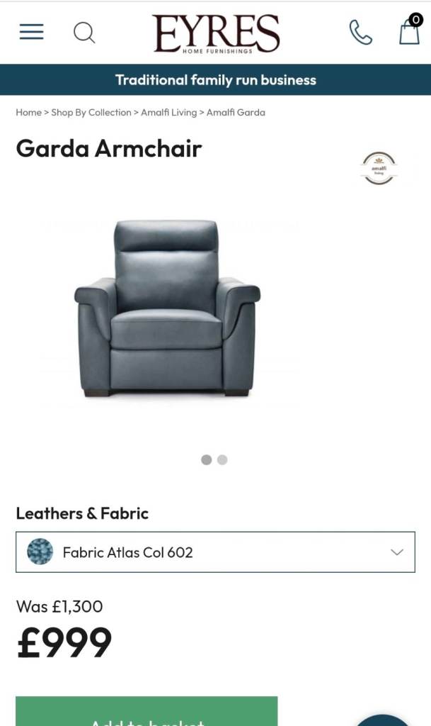 Armchair 105cm length 95cm wide