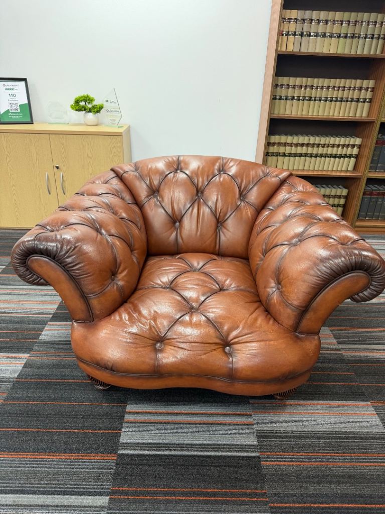 • Matching buttoned leather pouffe / footstool