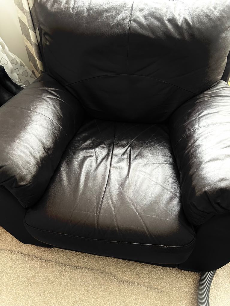 Also have foot stool at perfect height. Although the foot stool isn’t leather, will provide with set if required and if still available.