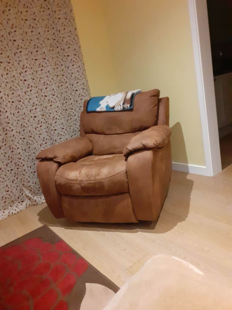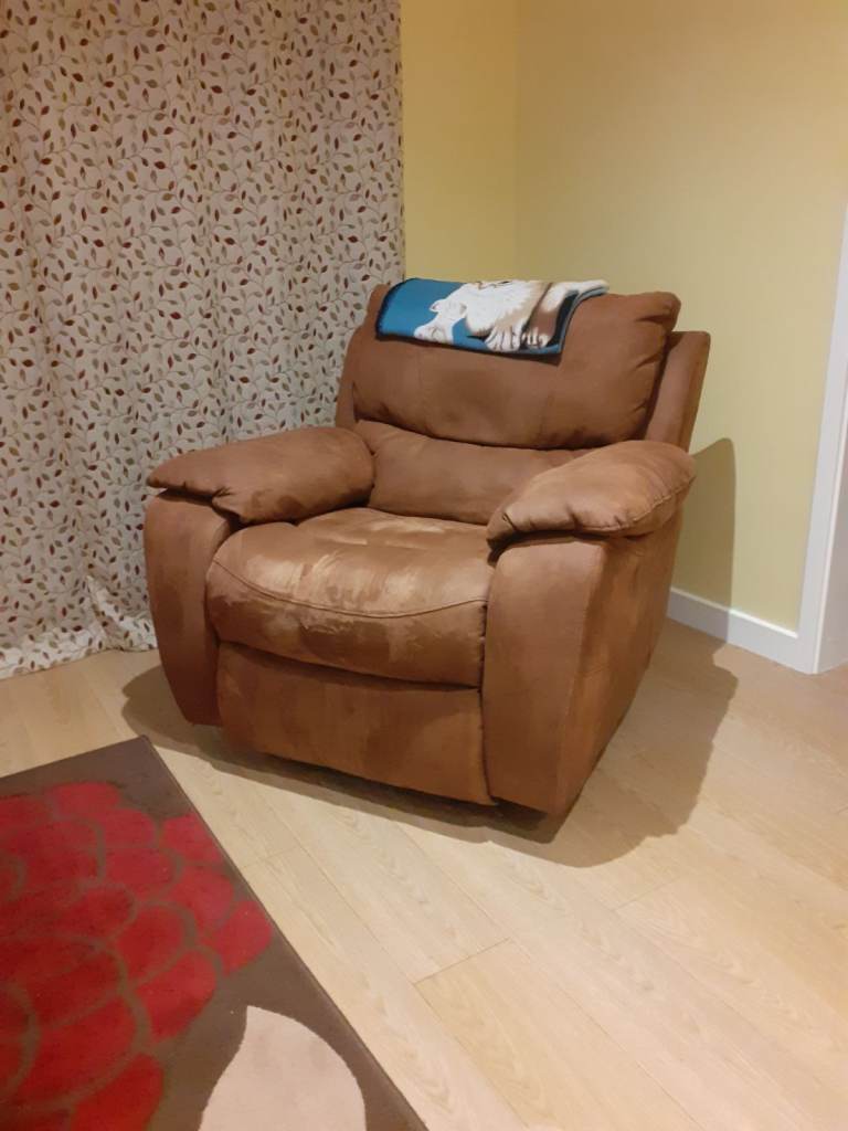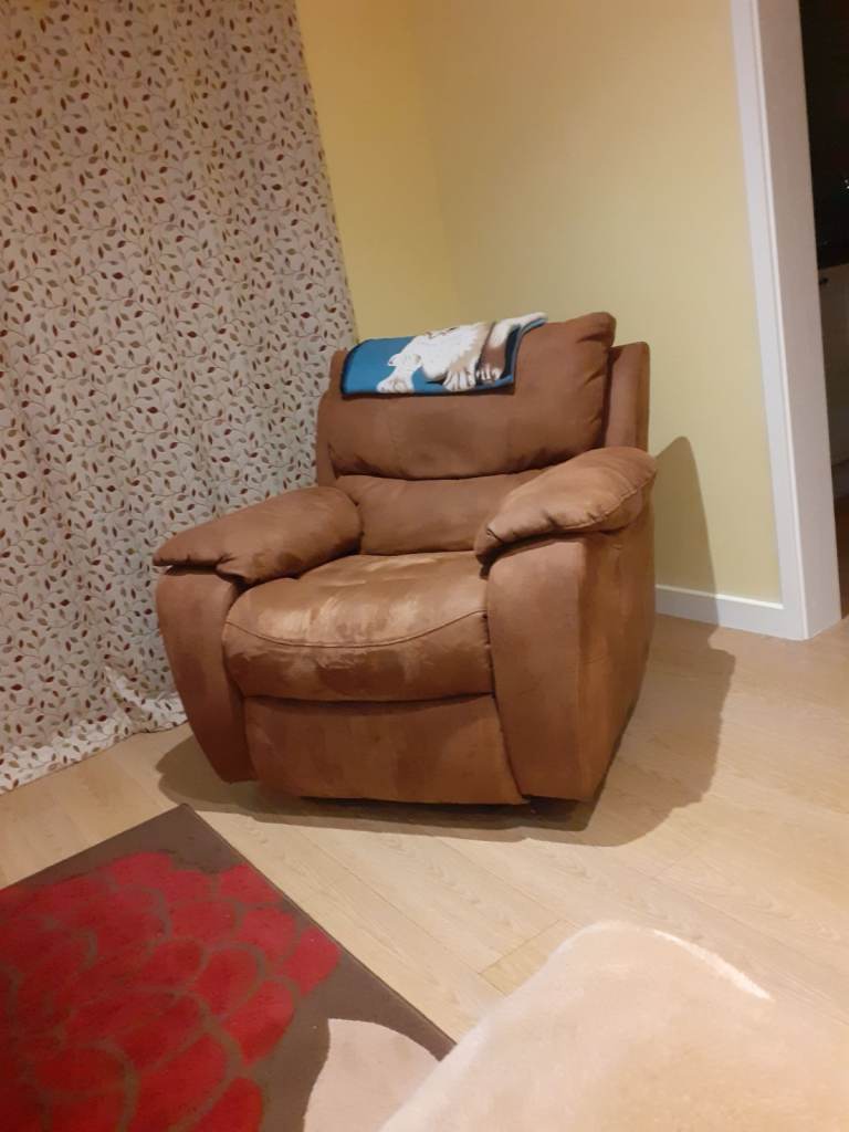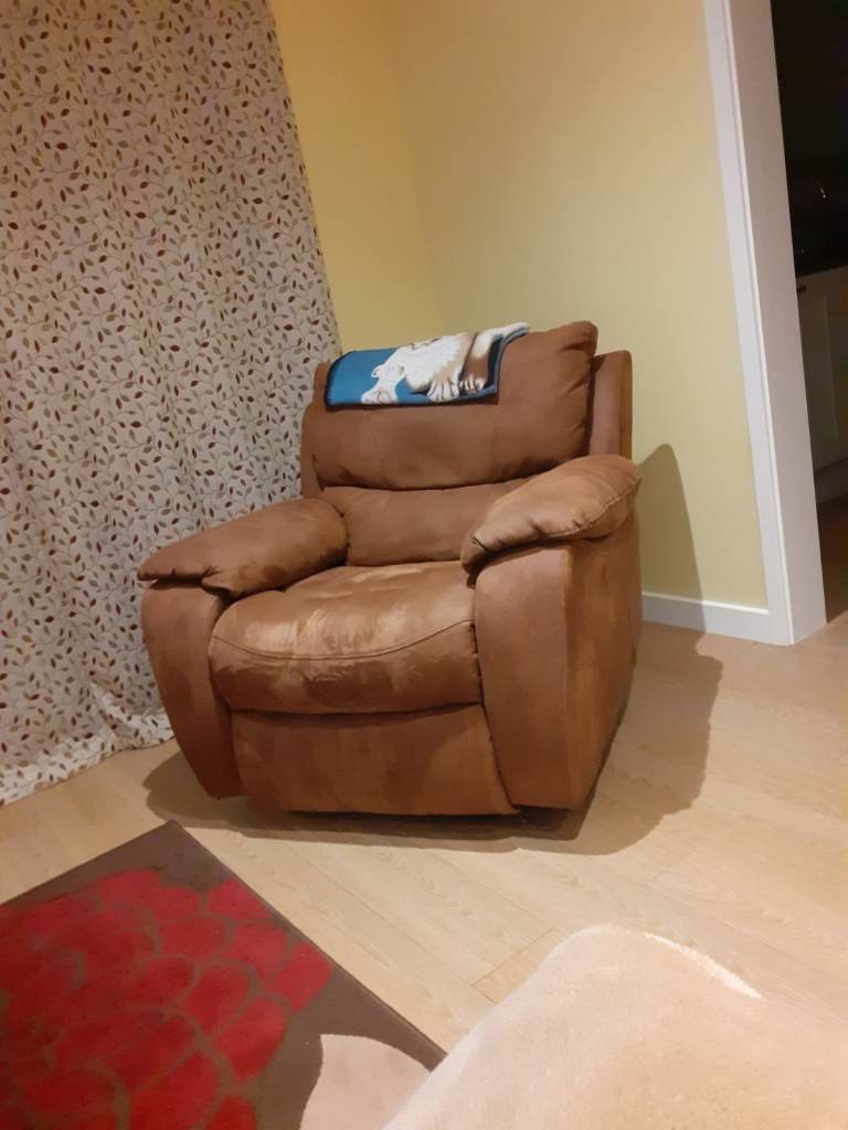Two Tan reclining armchairs in good condition side lever controlled not what you see often for used condition very good.