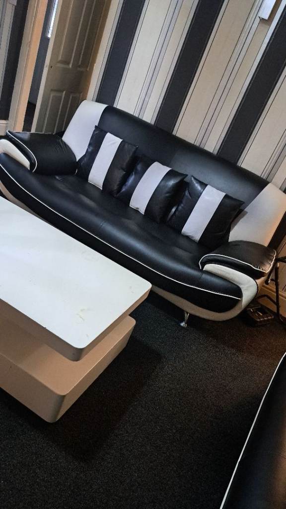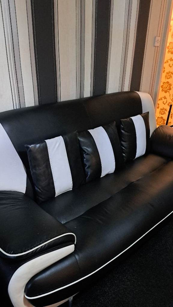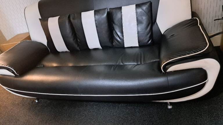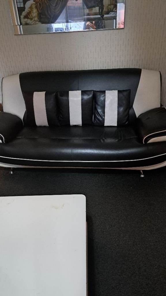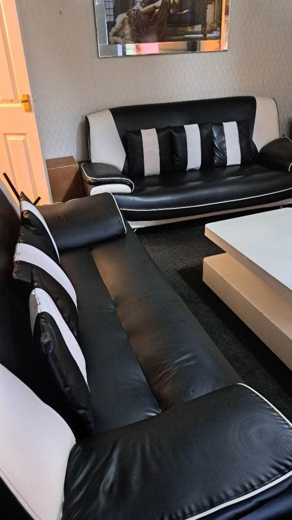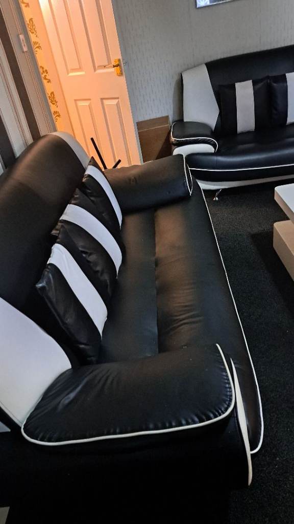 Two large black and white leather sofas £200