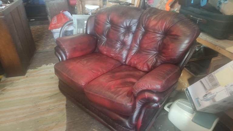 Two seater leather sofa, oxblood red. No damage. Made by Thomas Lloyd. 145cm wide, 100 cm high. £120. Buyer must collect.