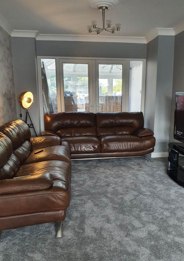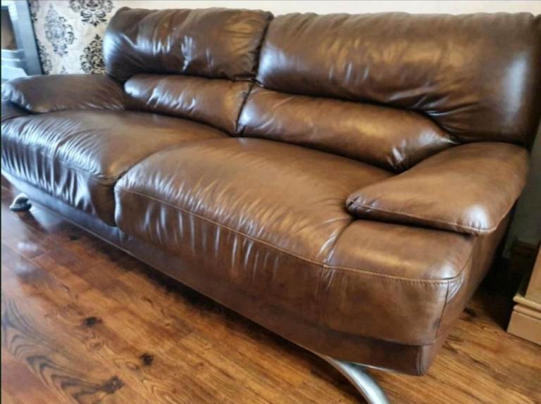 Matching set of TWO leather sofas, large size will seat 4 people on each sofa.