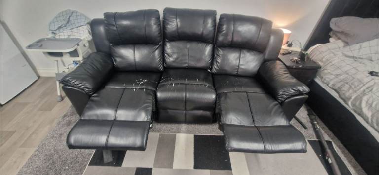 Posting for 9+ yearsValencia Black Leather 3 Seater Manual Recliner Sofa FREE