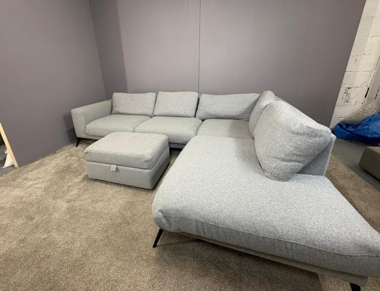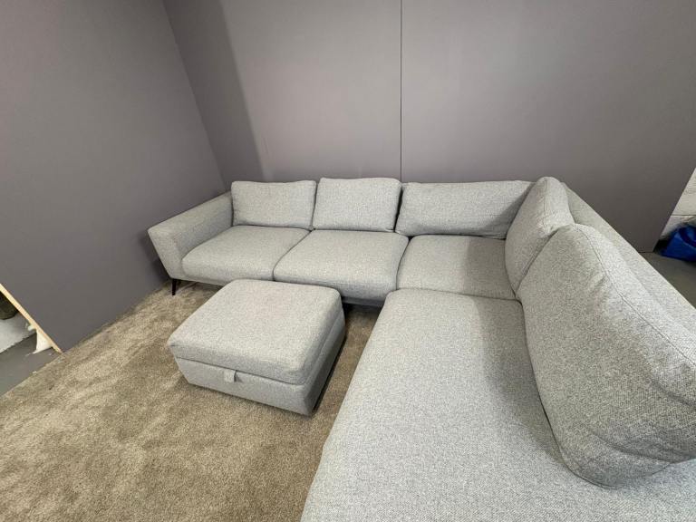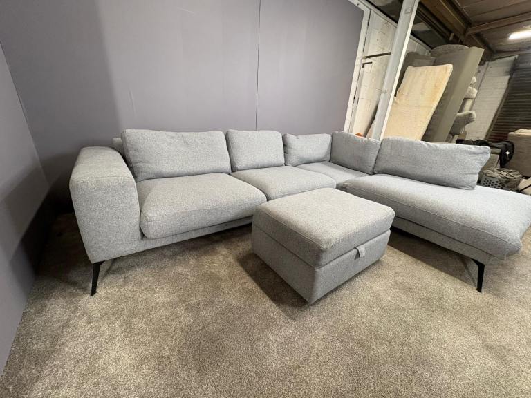 Very large Grey L shape sofa with matching footstool DELIVERY AVAILABLE!